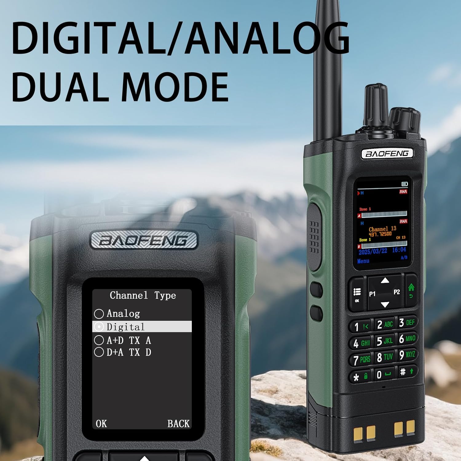 1. 10W High Power & Dual-Band Coverage​​ BAOFENG DM-32 DMR Radio with 10W output ensures stable communication in extreme environments. Its dual-band (VHF/UHF) supports 144-148MHz/430-440MHz TX frequencies, penetrating urban buildings and mountainous terrains for reliable emergency response