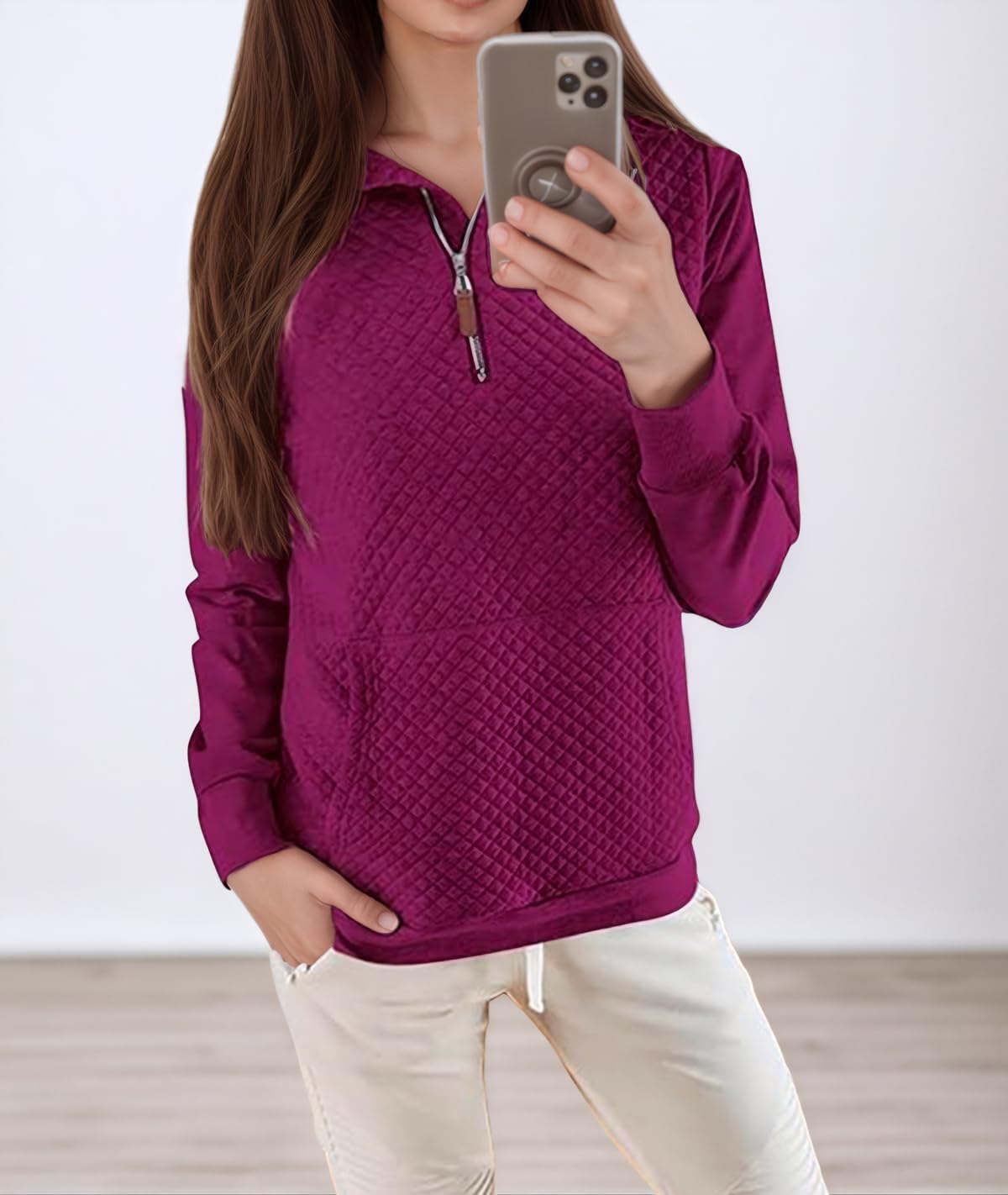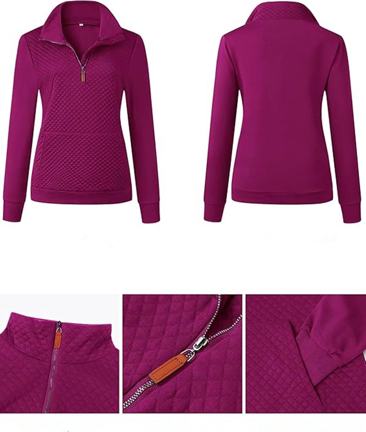 The women pullover outerwear convinces with excellent wearing properties and a fashionable lookPlain Sweatshirt Tops covers with Quilted Pattern, fashionable and uniqueWomen Fashion Quilted Pattern Quarter Zip SweatshirtRegular thickness make it fit for not only winter but also spring and fall / autumnLoose fit style, provides you enough movement space, relaxed and comfortable to wear