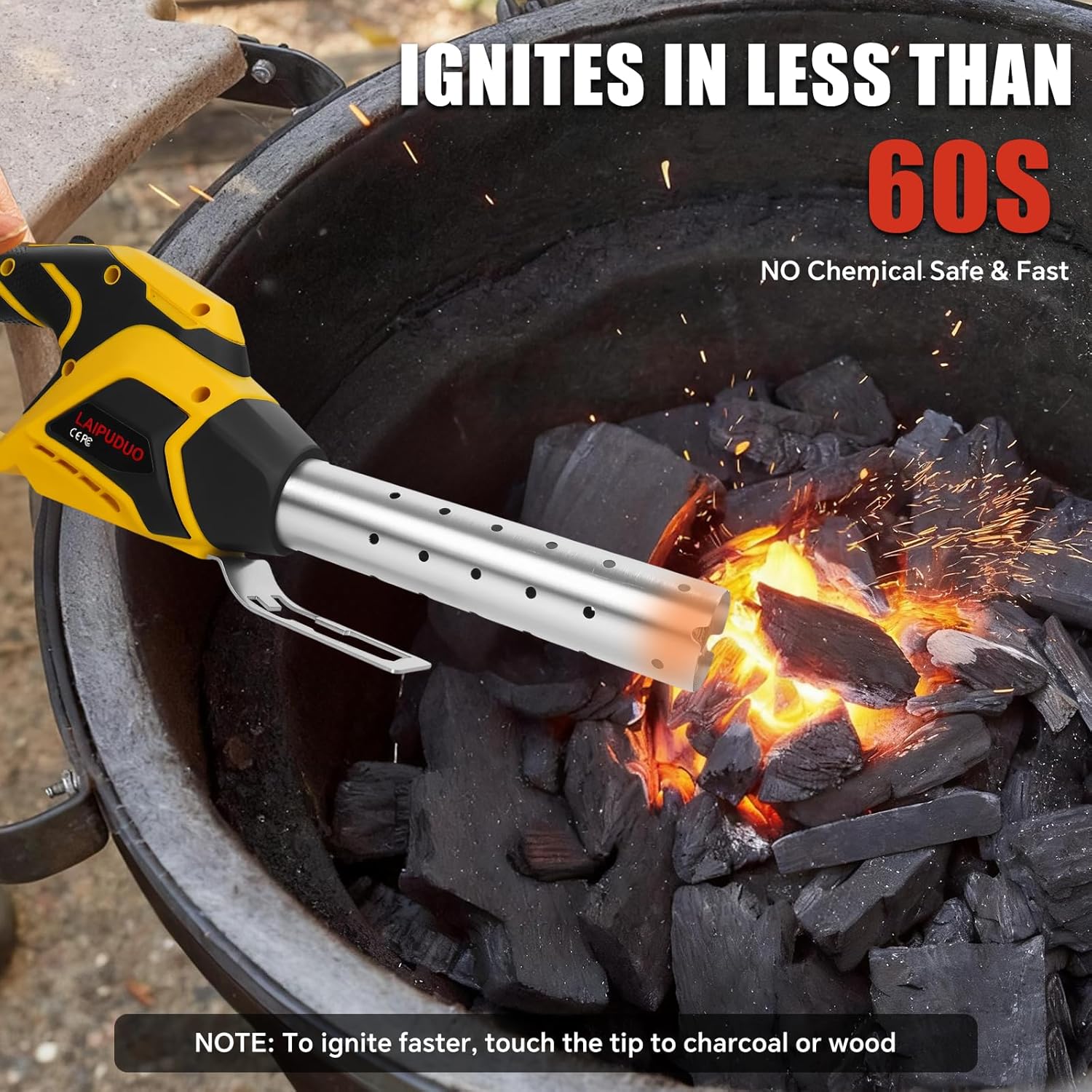 Chemical-Free, Safe & Healthy: Our 400W watt charcoal lighter uses only high temperature airflow ignition in a safe and easy to operate way, no need to use any chemical accelerant, and its hot air flow will not penetrate any toxic and harmful chemicals and bad taste into the food, which makes every barbecue cleaner and safer