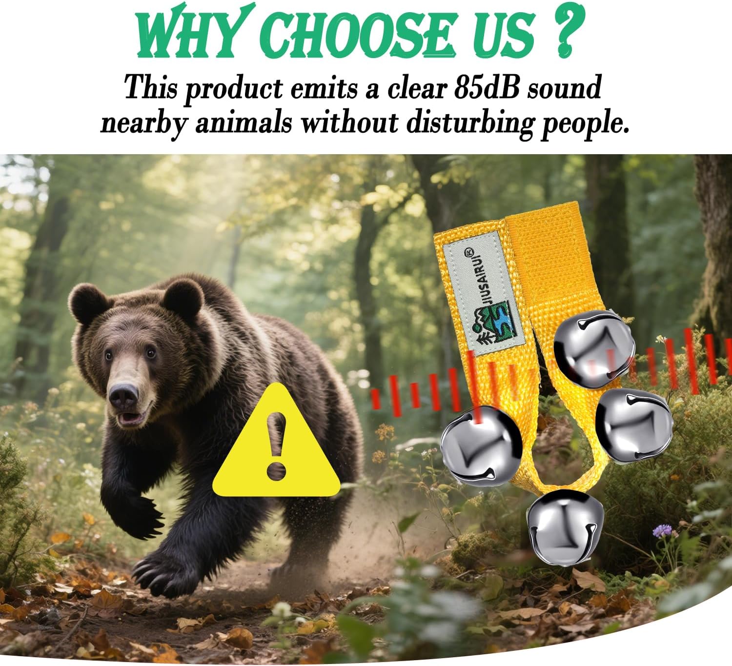 【Clear & Crisp Bell Sound – Effective Yet Gentle】Equipped with four bear bells, this product produces a clear sound around 85dB — loud Sound to bear deterrent animals,but not disruptive to your outdoor hike.Perfect for hikers and families.