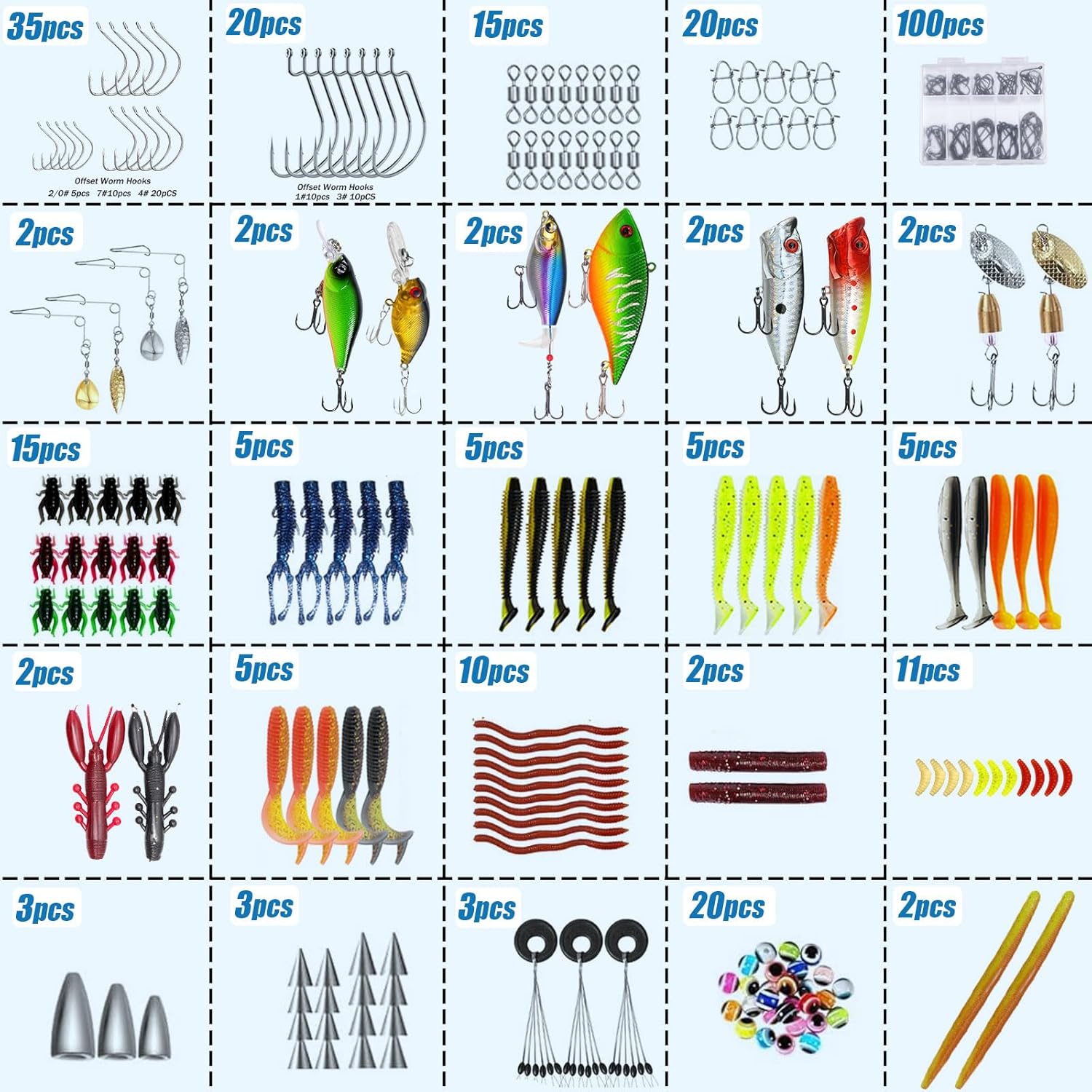 【Premium Freshwater & Saltwater Lures】 – High-quality hard baits, soft plastics, and terminal tackle designed for maximum attraction. Whether you’re fishing in lakes, rivers, or ponds, this fishing tackle kit covers all techniques—upper water, crankbait, jigging, and soft plastic fishing.
