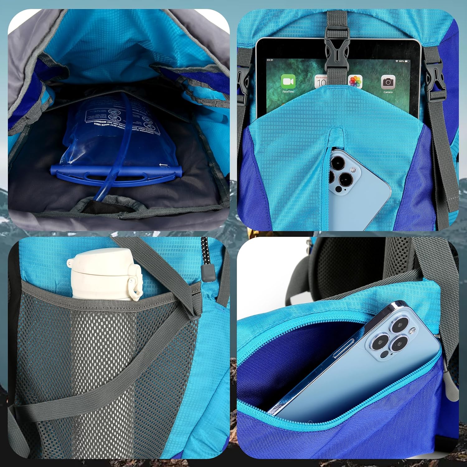 【Large Capacity Camping Backpack】Main pocket of travel daypack pack closing drawstring design, there is a compartment in the main pocket for water bladder. Multi-compartments design are to help you organize things. Travel backpack with shoe warehouse only 3.1 pounds, suitable for 3 or 4 days trips.