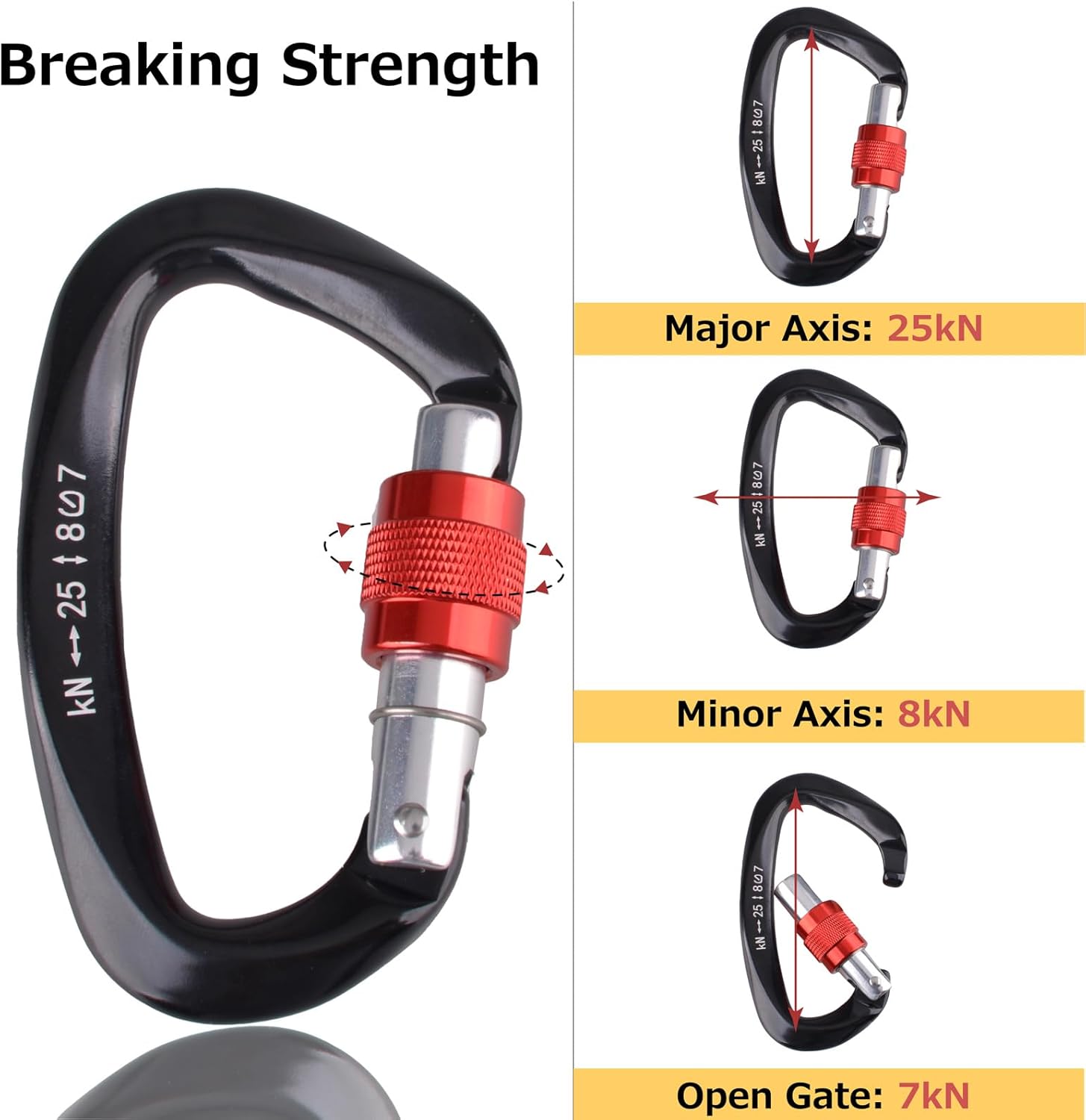 Versatile: The D-ring carabiners are perfect for various occasions: climbing, expanding, exploratory caverns, downhill, rescue, high-altitude operations, project protection hoisting, hammock, swing, aerial work, dog leash, keys, bottle hanging, etc