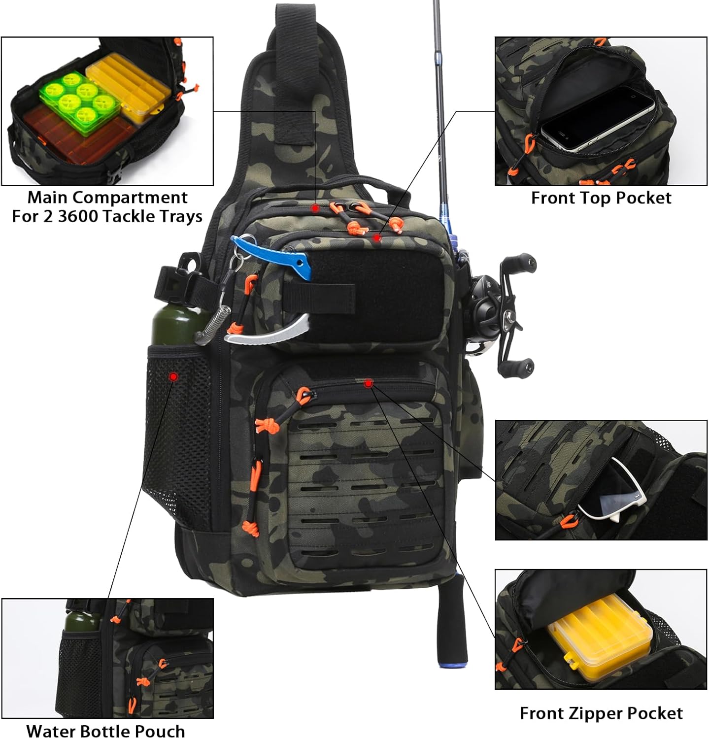Sturdy & Water-Resistant: Aocmpxs Fishing Sling Bag made of 600D oxford nylon fabric for excellent long-term performance and reliability, internal water-resistant coating helps to keep the interior dry in rainy weather. Lightweight Sling Fishing Pack weight: 1.3lb/0.58kg.