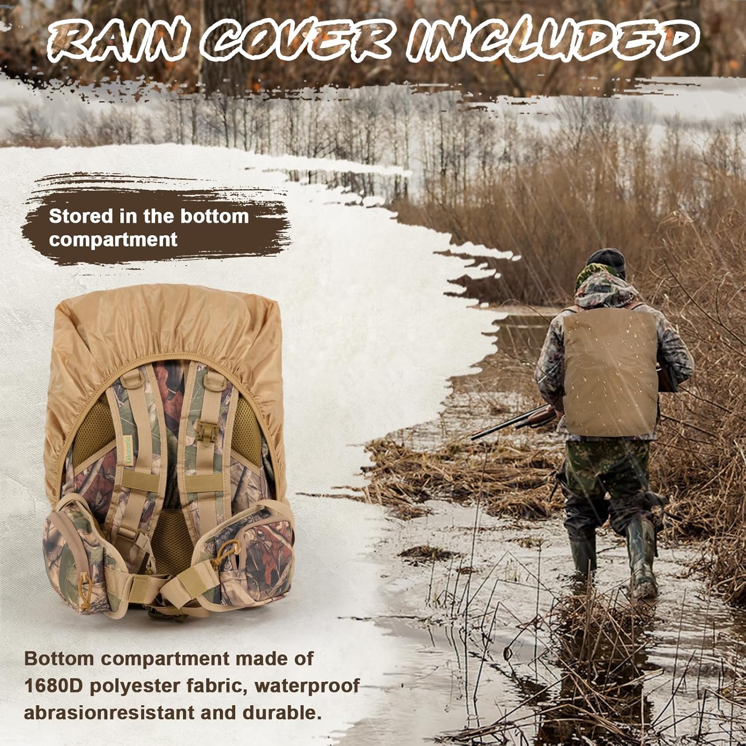Waterproof Hunting Day Pack with Rain Cover: Constructed from polyester fabric, this hunting backpack keeps your gear dry. Bottom hidden pocket includes a rain cover, effectively warding off harsh storms. Moreover, Glonerle mens hunting backpack is compatible with a 2L water bladder to keep you hydrated during long treks.(Exclude water bladder)