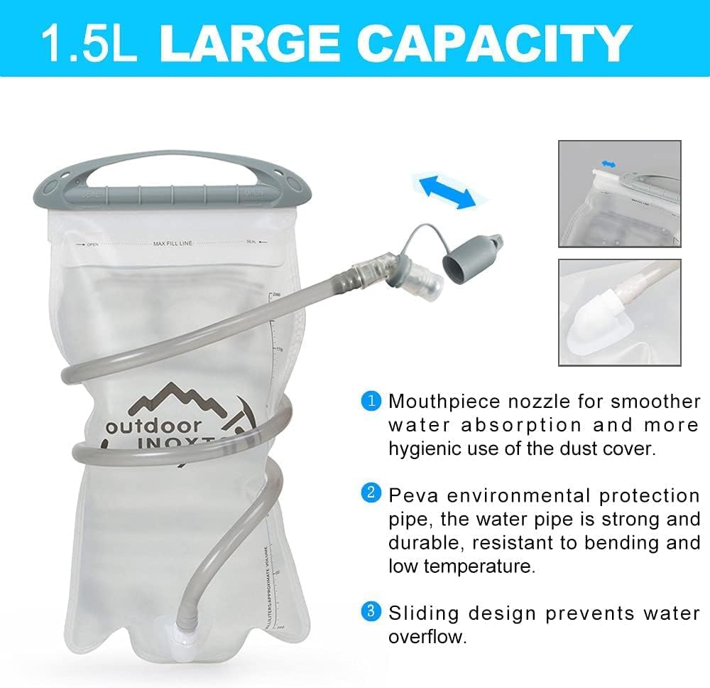 ❤ 【Ergonomic and comfortable design】 INOXTO Hiking Backpack Water Bladder Vest Kit aligns your back while gently protecting your muscles. The ventilated mesh cover keeps your back cool by maintaining air circulation, preventing discomfort due to accumulated heat, and providing excellent air circulation and breathability.