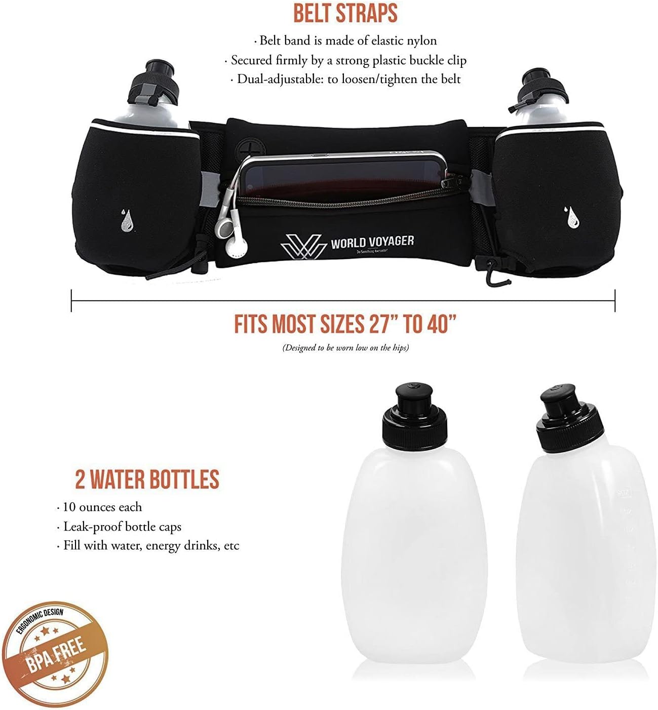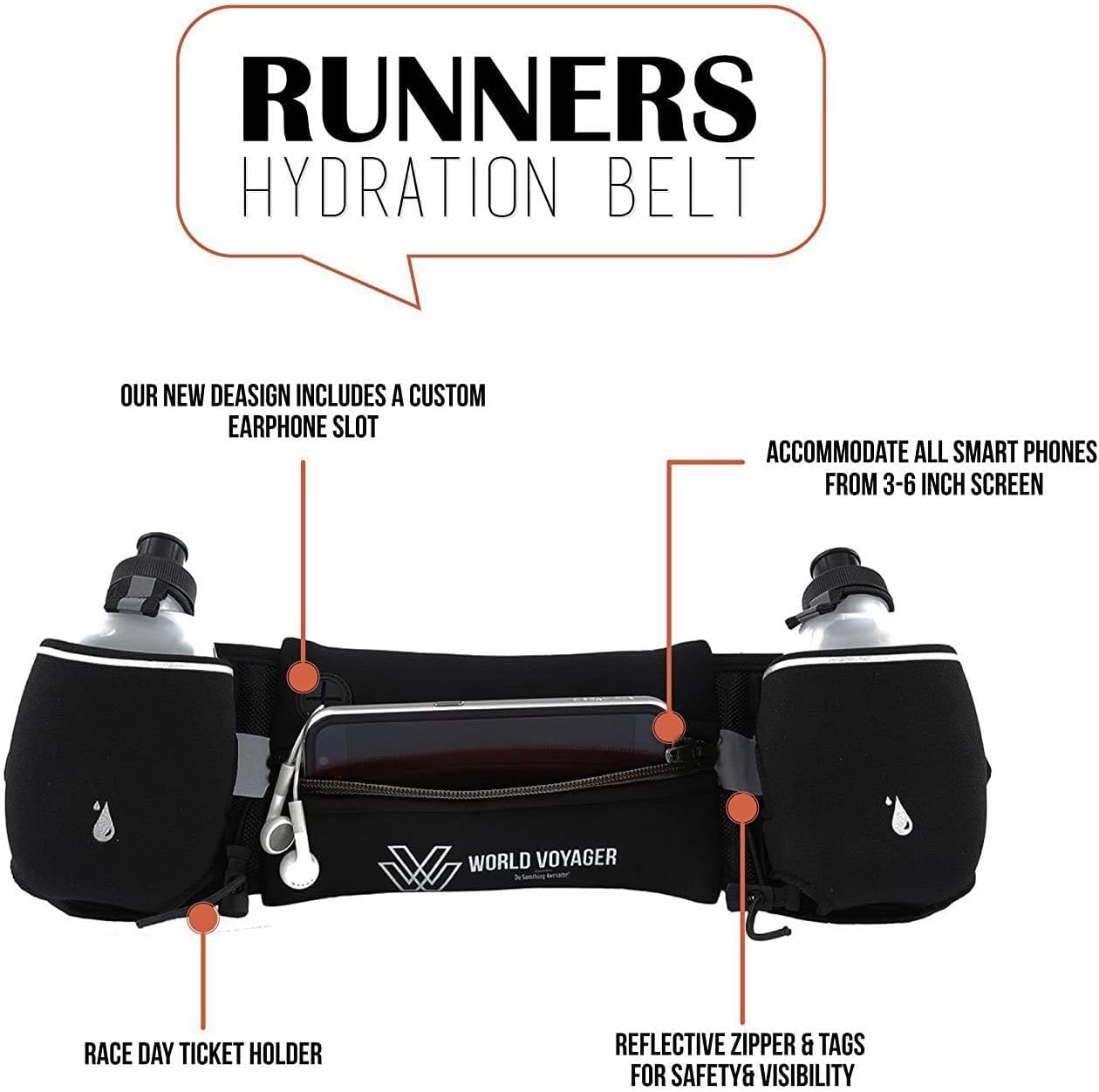 π‘οΈ SUPREME QUALITY ENSURED: Boasting a custom rubber epoxy on both sides for anti-slip and an exclusive soft waterproof fabric blend of Lycra+Neoprene, our World Voyager hydration belt provides unparalleled quality and durability.