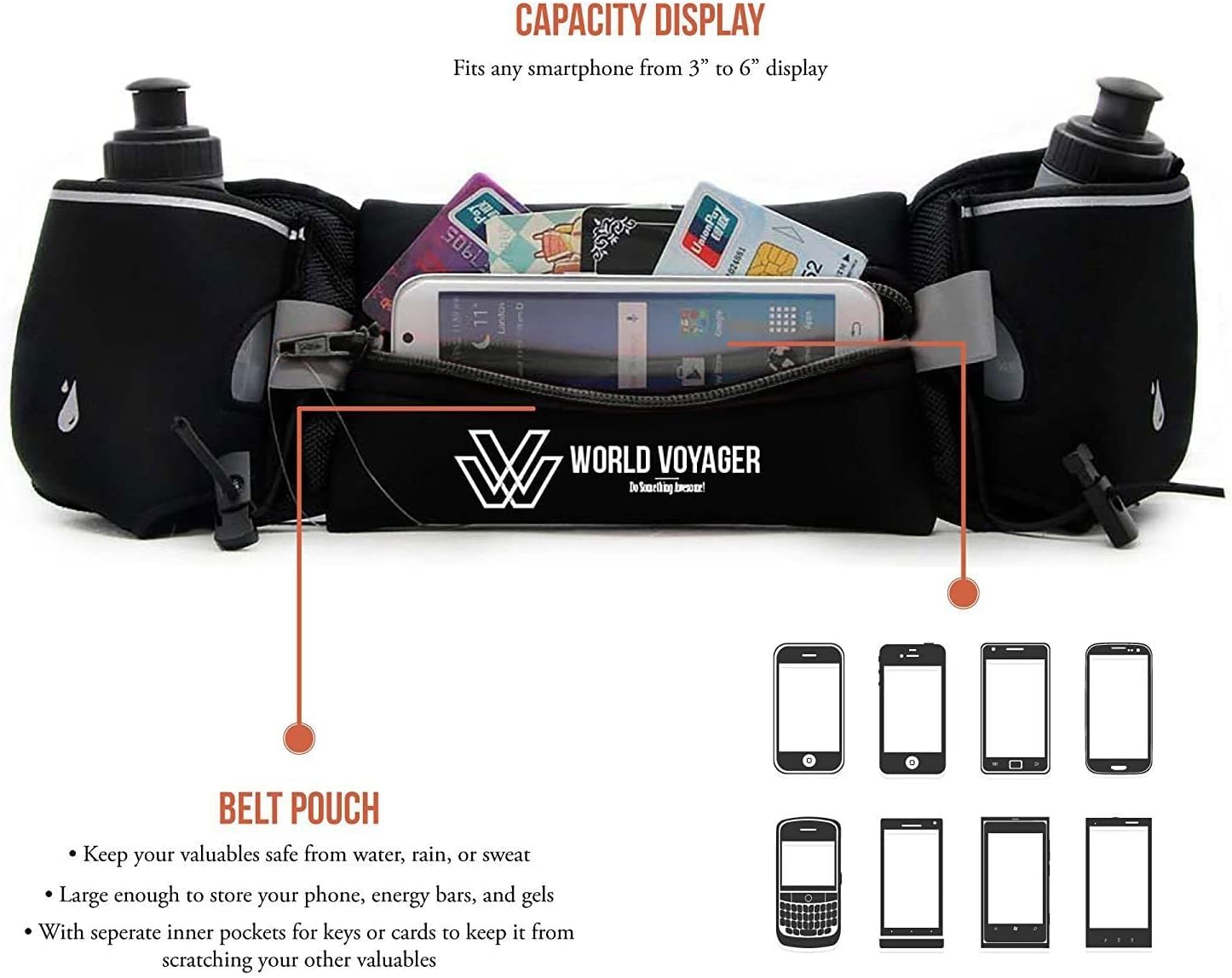 π‘οΈ SUPREME QUALITY ENSURED: Boasting a custom rubber epoxy on both sides for anti-slip and an exclusive soft waterproof fabric blend of Lycra+Neoprene, our World Voyager hydration belt provides unparalleled quality and durability.