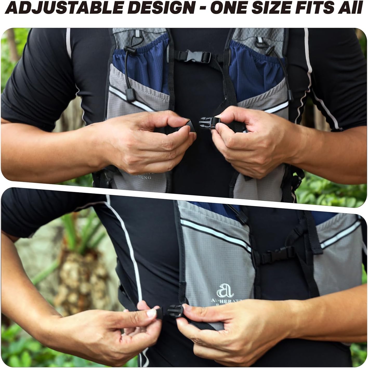 Organized & Safe for Night Runs Stay organized and visible with this versatile running vest. It includes a dedicated hydration bladder compartment, multiple zippered pockets for gear and nutrition, and 3M reflective strips for low-light safety. Secure strap clips manage excess webbing, ensuring a clean and safe run any time of day.