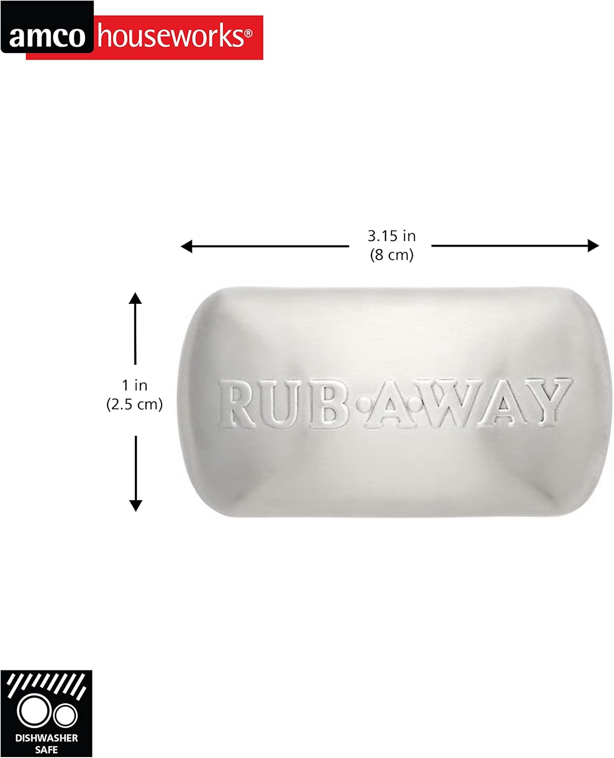 Easily remove lingering scents from your hands with this Mini Rub-A-Way Bar by Amco. The molecules in the stainless steel bind with sulfur molecules on your hands, transferring odors onto the bar when rubbed. This simple-to-use, portable bar works with or without water – simply rub the bar between your hands to whisk away unwanted smells. Use to freshen hands after handling garlic, fish, onions, and other fragrant foods, or while camping, fishing, hiking, and more. The compact design effortlessly fits in pockets, bags, and backpacks so you can keep your hands odor free on-the-go. Dishwasher safe.