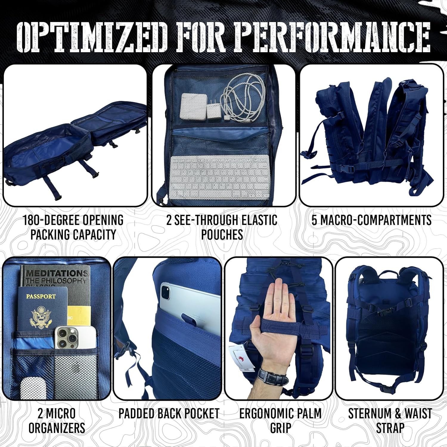 ๐๏ธ MILITARY DURABILITY & CAPACITY: Constructed from heavy-duty 900D and 1200D Oxford fabrics, our tactical backpack is stress-tested to endure 50 lbs. With 5 compartments and a 12-gallon capacity, it’s the go bag for army missions, hunting excursions, range days, and other military settings.