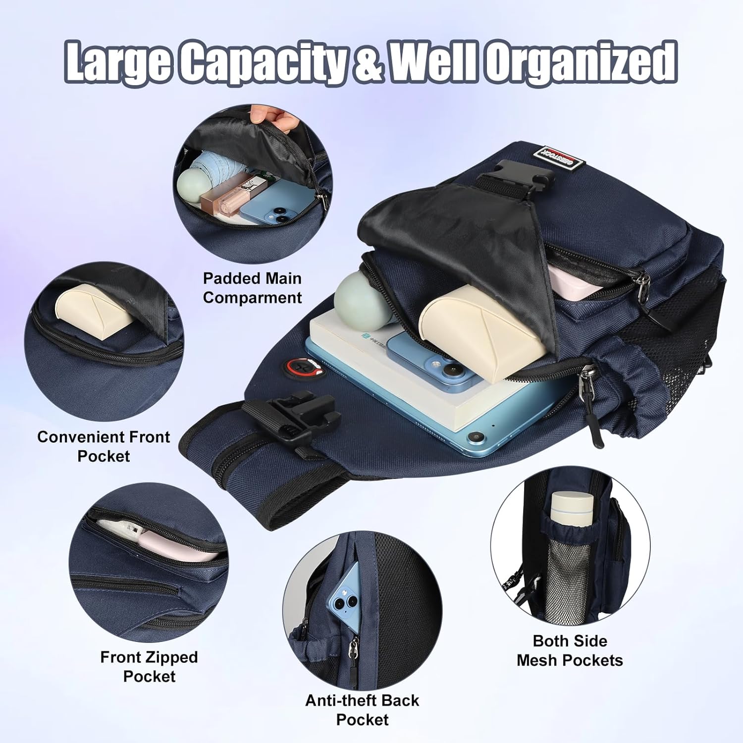 【Extended Comfort for All-Day & Taller Users】Enjoy all-day comfort with an extra-long adjustable shoulder strap (19″ to 47″), designed to comfortably fit a wider range of body types, including taller users. The breathable mesh back panel and padded straps enhance airflow and reduce strain, making it ideal for extended wear during commutes or long hikes.