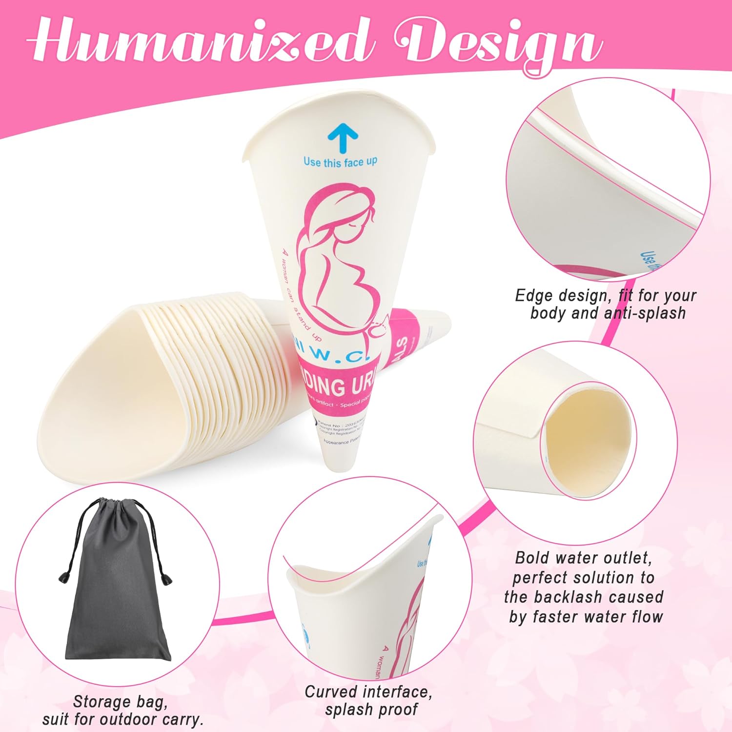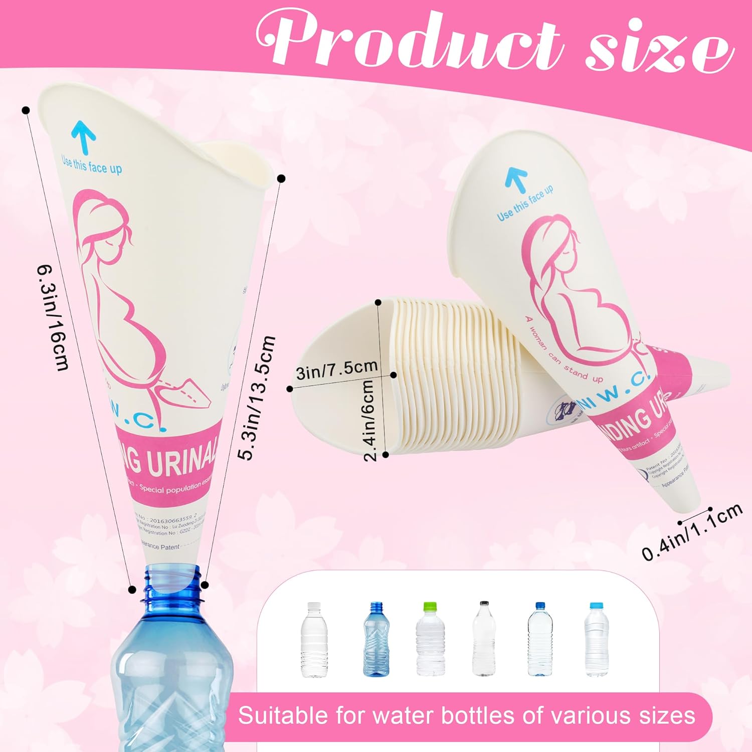【Women Convenient As Like Men】: Standing pee disposable cups for women widely use in life, suit for females, pregnant woman, and injured persons in camping, hiking, traveling and dirty toilet, women could standing up pee, convenient as like men.