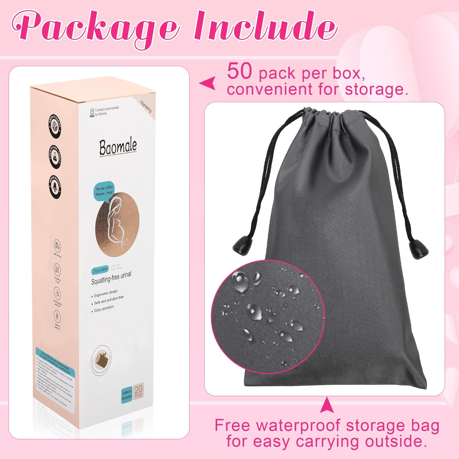 【Portable and Recyclable】: Female outdoor pee cup easy to use and portable, no need clean, recyclable, environmental protection. Package included 20 pack, enough for 3-5 times outside use, good gift for women.