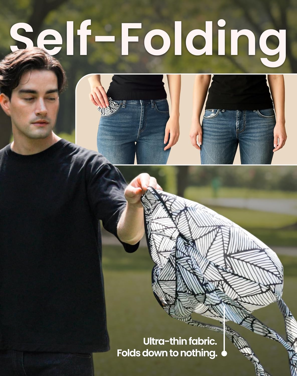 No folding tricks needed. Our soft, ultralight ripstop fabric naturally eliminates air pockets, folding into a tiny bundle with barely any effort or bulk.