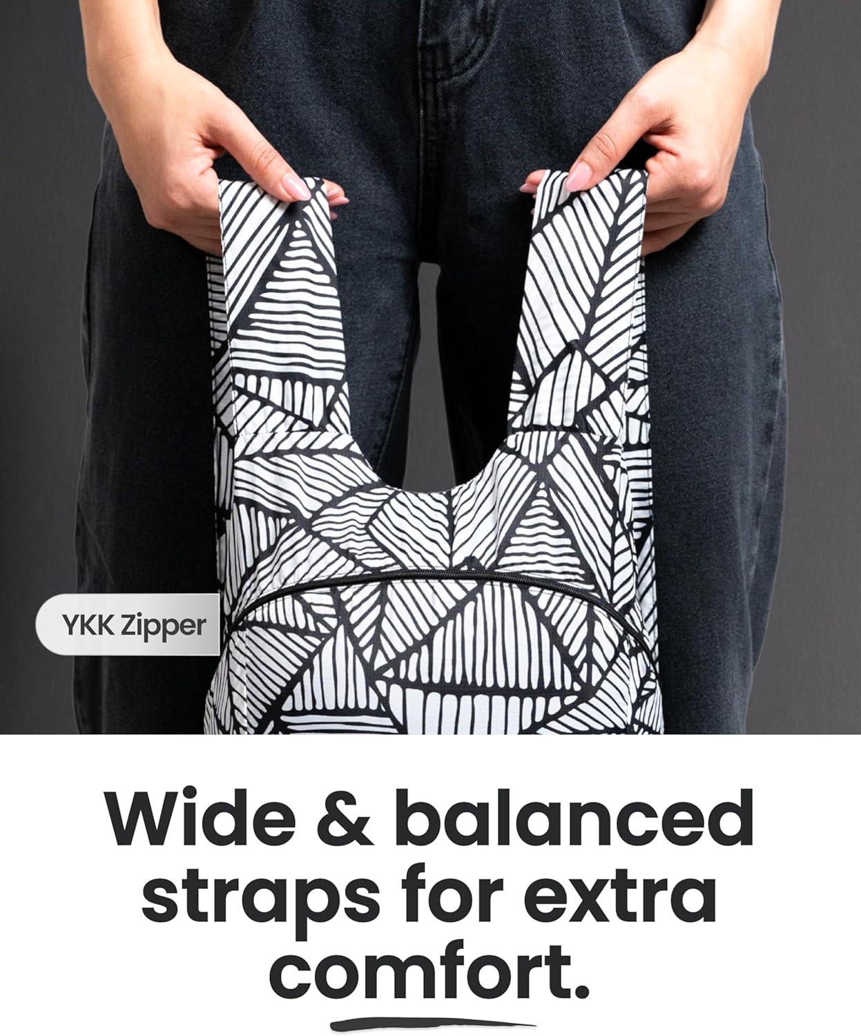 Much stronger than you think — just 0.05mm thin yet still able to carry up to 66 lbs thanks to the unique fabric and reinforced stitching at key stress points.