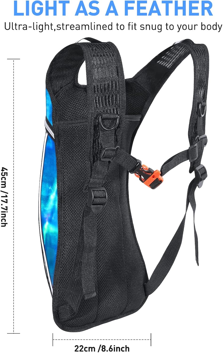 【COMFORTABLE & RELIABLE】- Ergonomically designed with a customizable, adjustable chest strap to fit a variety of body types, ensuring no bounce or pressure during your activities. The soft, breathable mesh back accelerates airflow, keeping your back cool.An integrated survival whistle adds extra safety for outdoor exploration.