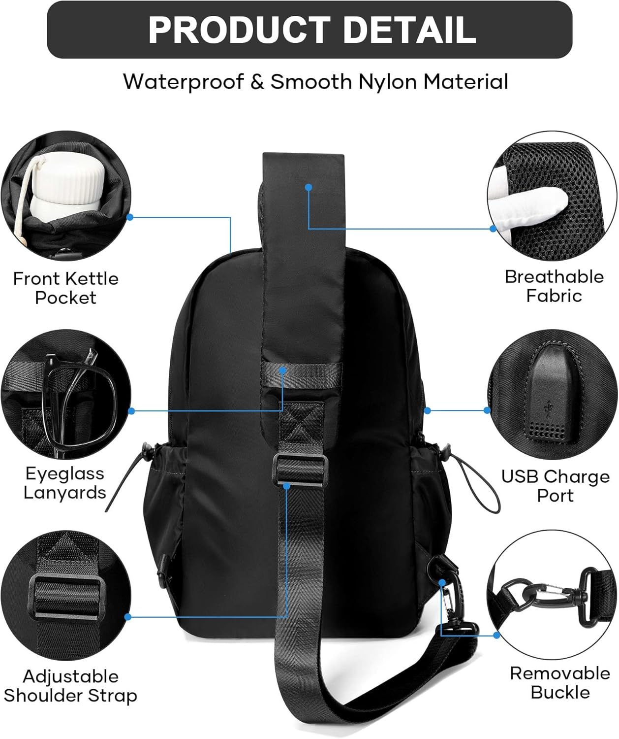 【High Quality Material】Shoulder bag for men women is made of high-quality nylon, waterproof, dirt-resistant, lighter and more easy to take care of. Shoulder backpack with excellent workmanship can show your outstanding temperament. Lightweight crossbody backpack bags sits nicely and freely on your back/chest and if this hiking bags for men gets durty, only just need wipe it off to stay it clean.