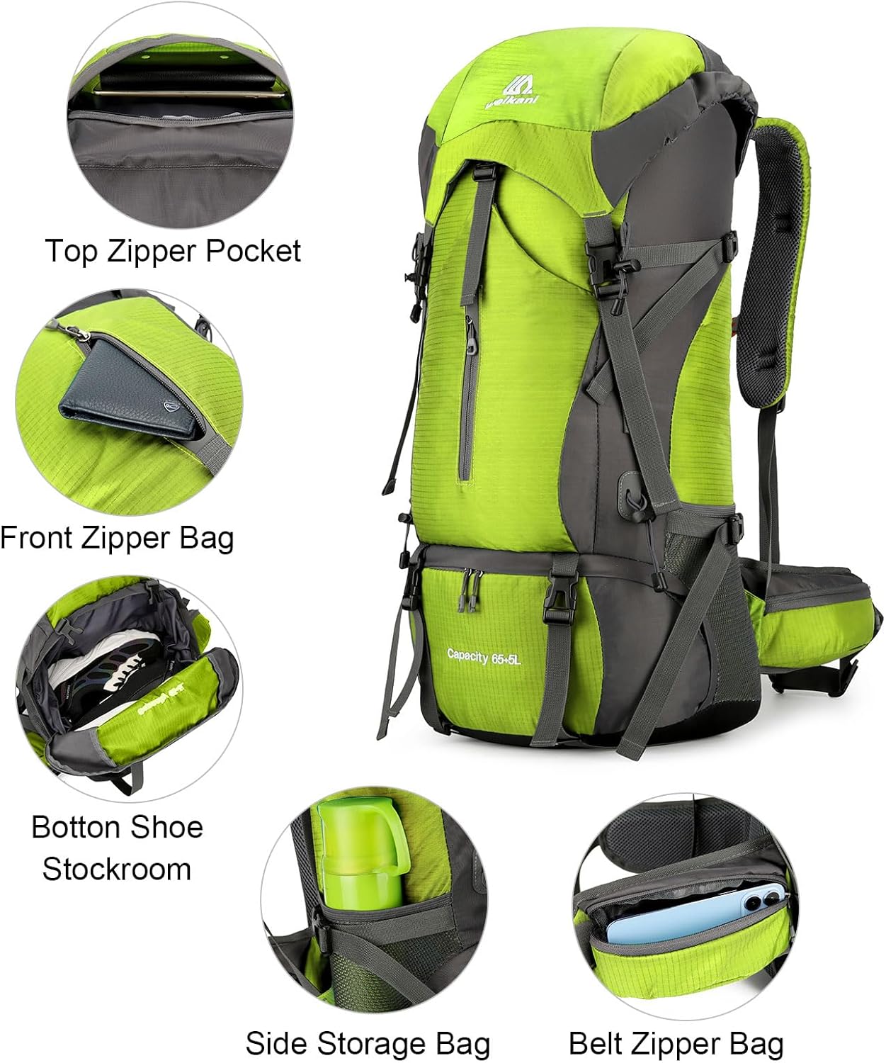 𝐕𝐞𝐫𝐬𝐚𝐭𝐢𝐥𝐞 & 𝐓𝐫𝐮𝐬𝐭𝐞𝐝: The versatile ShowyLive backpacking backpack is your trusted companion for a wide array of outdoor activities, including hiking, camping, and travel, The zipper is very durable, Plenty of pockets, space for a small umbrella or water bottle on the side, very sturdy. Great external organization, external mesh pockets for water bottle and bear spray. Backed by a 2 quality support promise.
