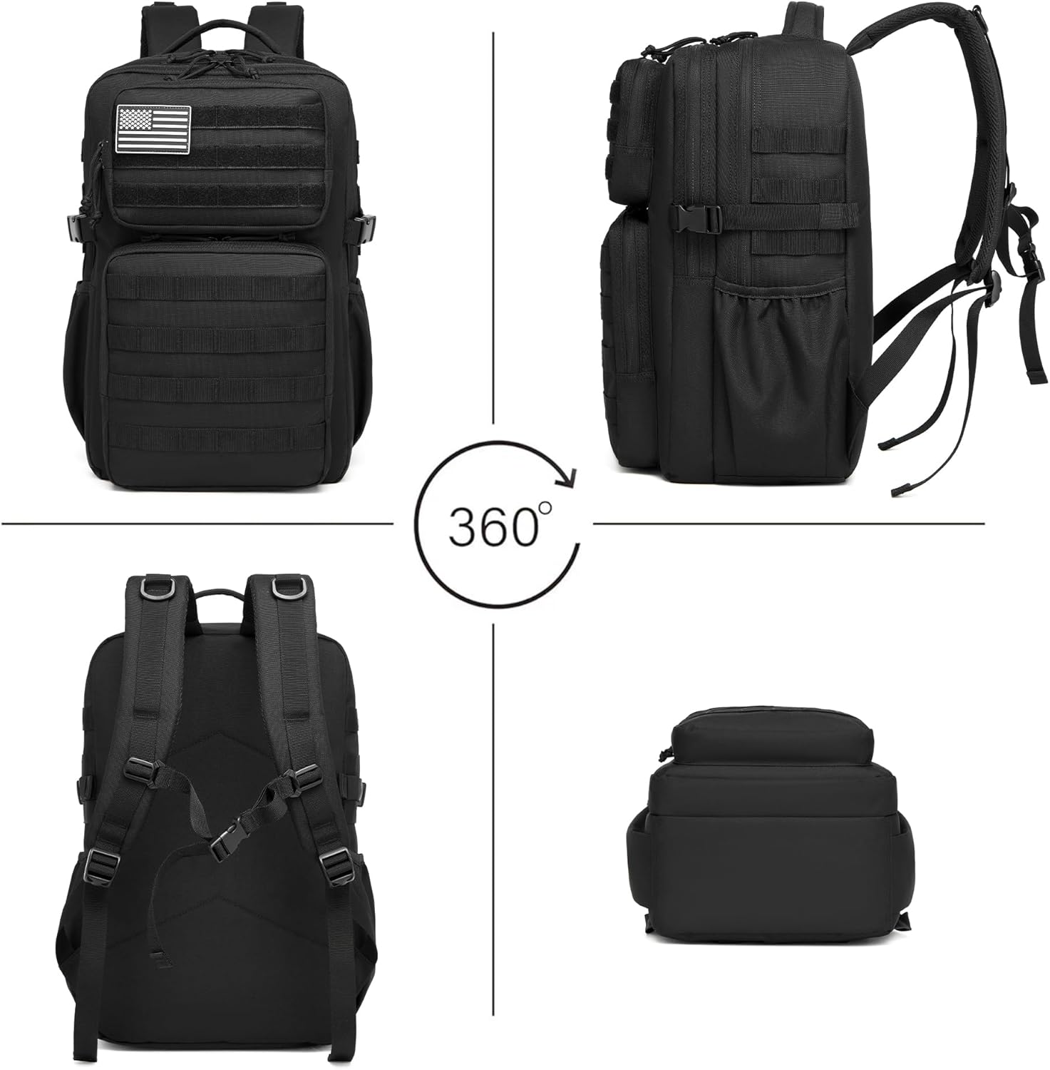 Premium Waterproof and Tear-Resistant Fabric: Crafted from durable 900D waterproof material, this tactical backpack offers superior protection against water and moisture, ensuring your belongings stay dry in unpredictable weather. The reinforced bottom with double-layer PU coating enhances its tear resistance and wear durability, making it the perfect companion for rugged outdoor adventures or demanding daily use