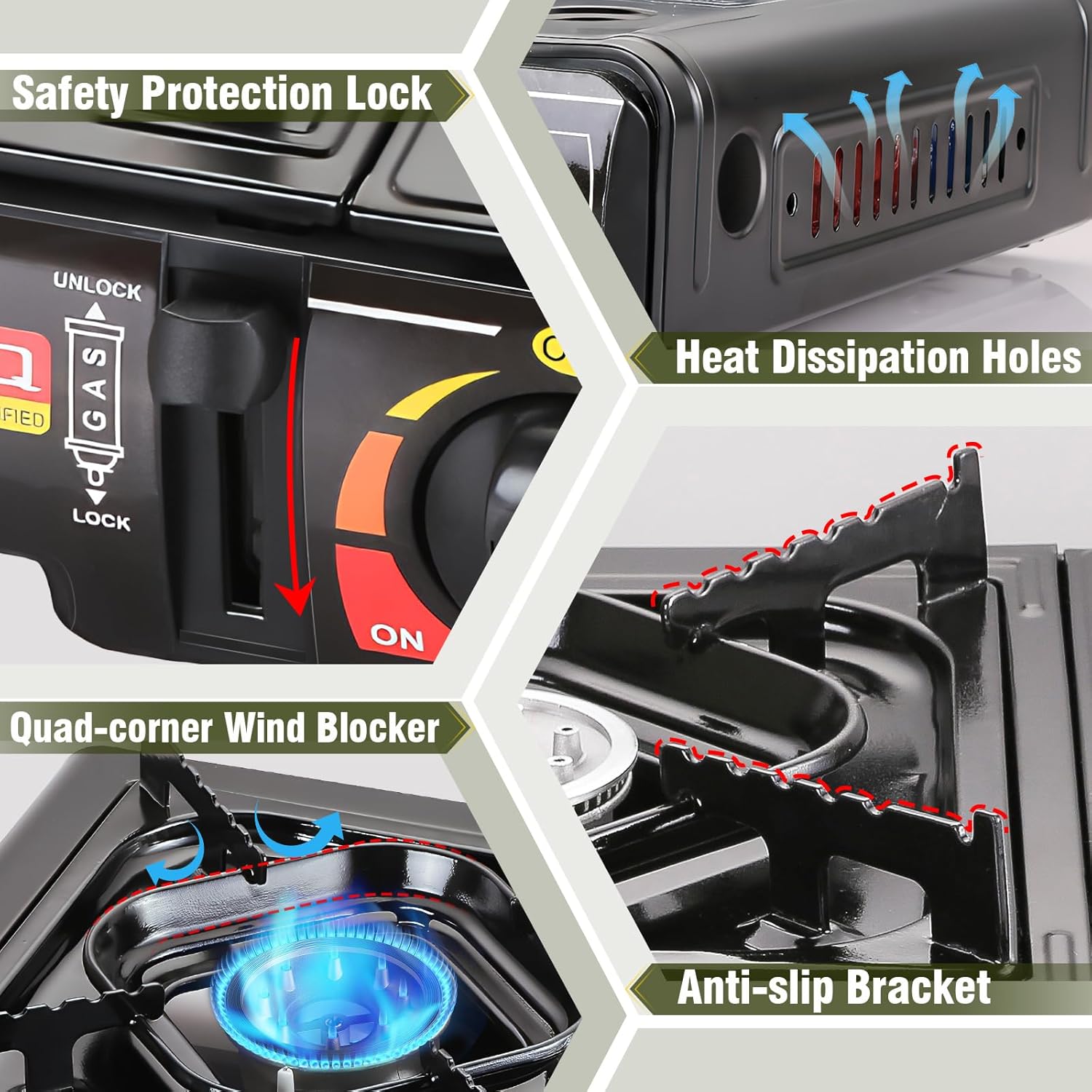 🌪️ QUAD-CORNER WINDBLOCKER & PRECISE CONTROL: Master your cooking with a smooth-turn dial that offers everything from a gentle simmer to a roaring boil. The heavy-duty, four-corner windblocker protects the flame from gusty winds, ensuring stable heat performance for winter camping or beachside BBQs.