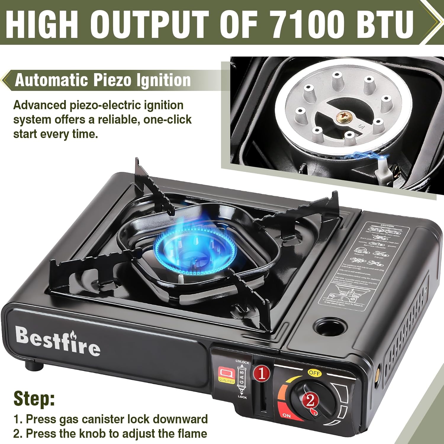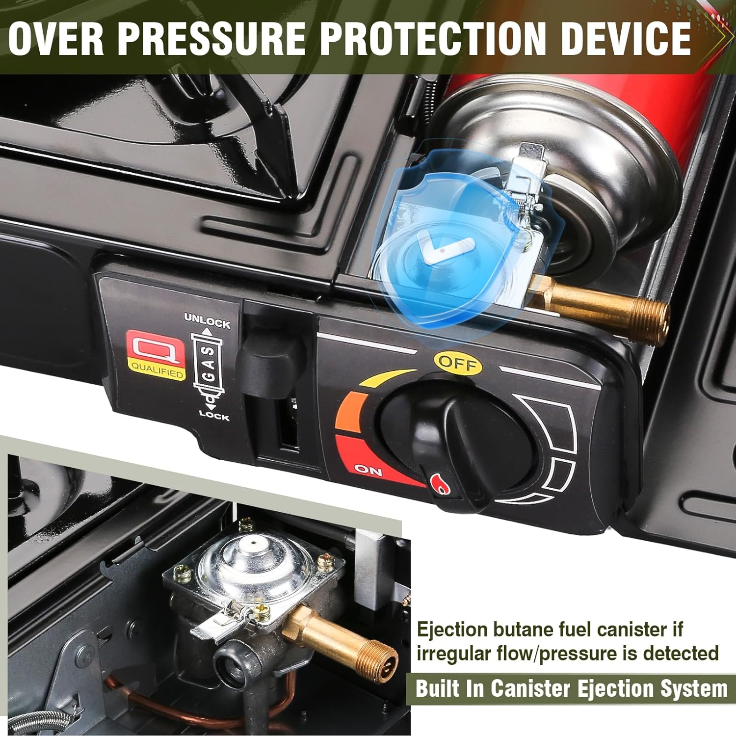 🛡️ ADVANCED SAFETY PROTECTION: Your safety is our priority. This ETL-standard stove features an integrated pressure-sensor cartridge ejection system and an automatic gas flow cut-off. If abnormal pressure is detected, the stove automatically shuts down to prevent leaks and accidents.
