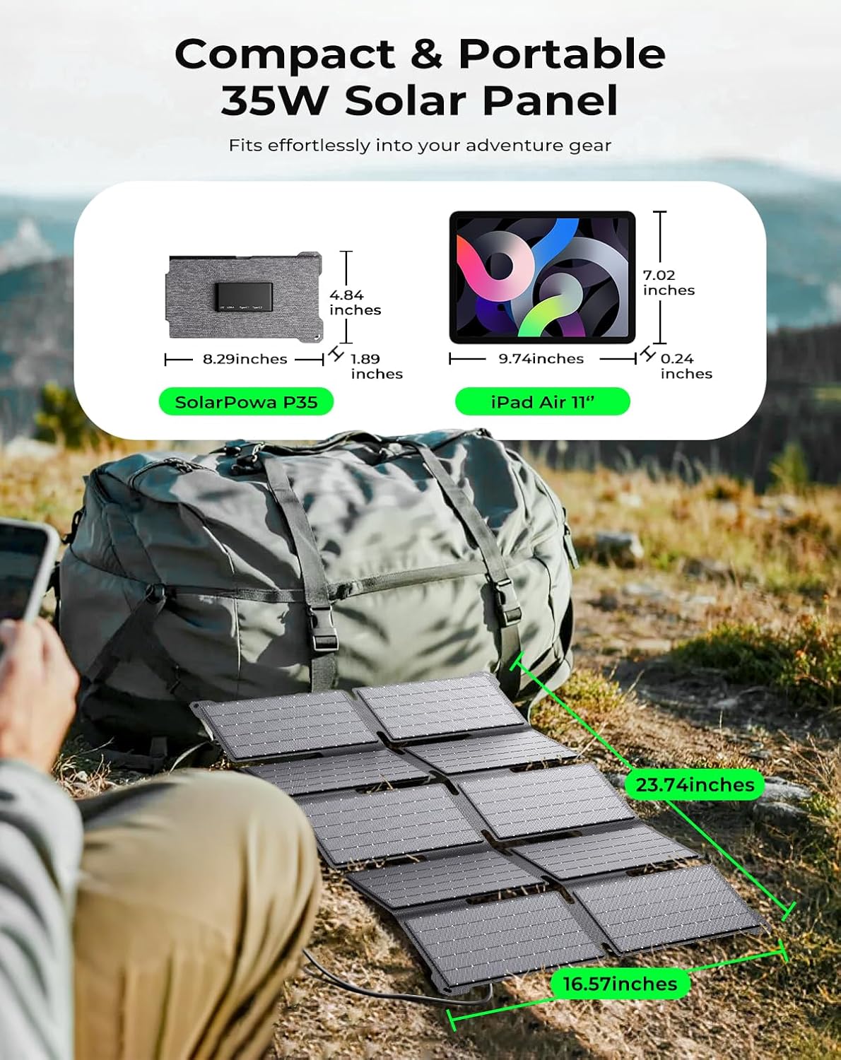Ultra-Portable & Lightweight: Foldable to just 8.29 × 4.84 × 1.89 inches and weighing only 1.54 lbs, this compact solar phone charger easily fits in your backpack. Perfect for camping, hiking, backpacking, RV travel, and outdoor emergencies.