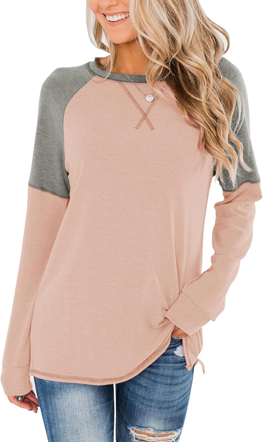 Women’s casual long sleeve tunic tops crew neck color block blouses meet your fashion