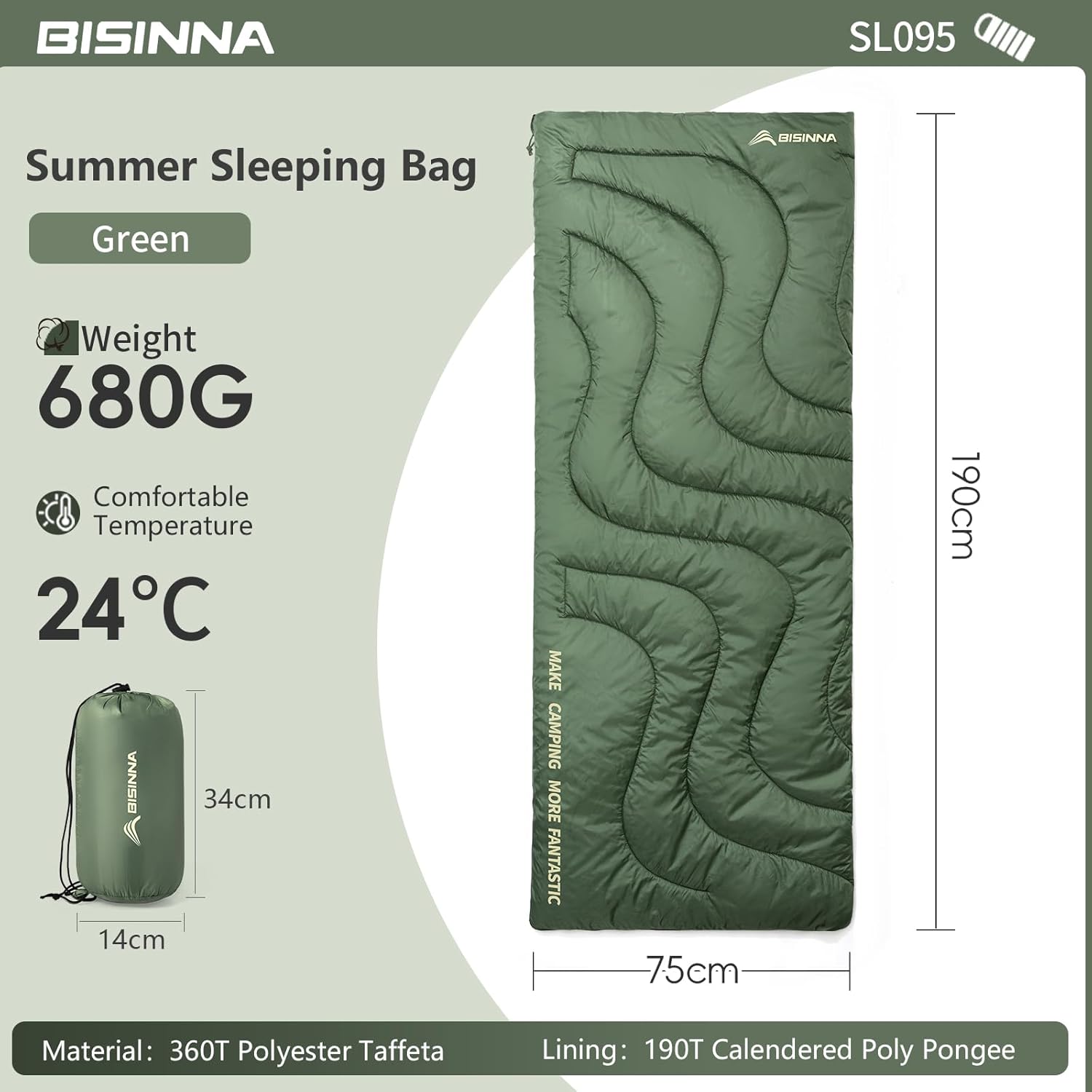 【Comfortable & Spacious】190×75cm Universal Design, Generously sized to comfortably accommodate most adults while providing cozy warmth for children. The rectangular shape allows freedom of movement without feeling restricted, making it perfect for family camping trips or solo adventures