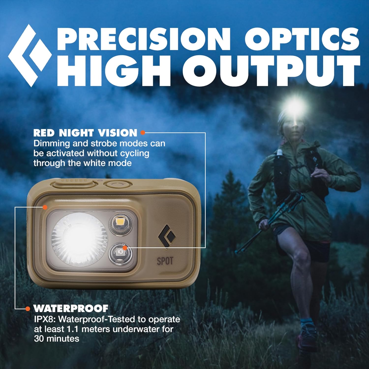 POWERFUL LIGHT OUTPUT: Delivers up to 400 lumens of brightness for reliable visibility as a headlight/headlamp for hiking gear, camping gear, night running gear, and emergency use. The powerful beam helps illuminate trails, campsites, and dark environments with ease. Ideal for camping supplies and hiking essentials.