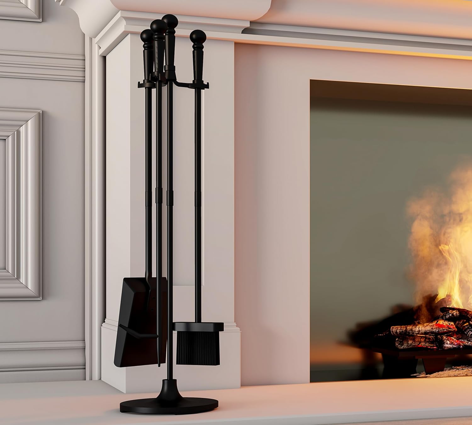 STURDY AND SAFELY:The heavy-duty fireplace tool sets are made of durable wrought iron with modern powder coating on the surface.With excellent workmanship,the fireplace tools will not bend and break easily.Most importantly,this fireplace tong can keep you away from the heat and keep a safe distance from the fireplace,but at the same time allows you to manipulate hot burning logs and sweep away dust.