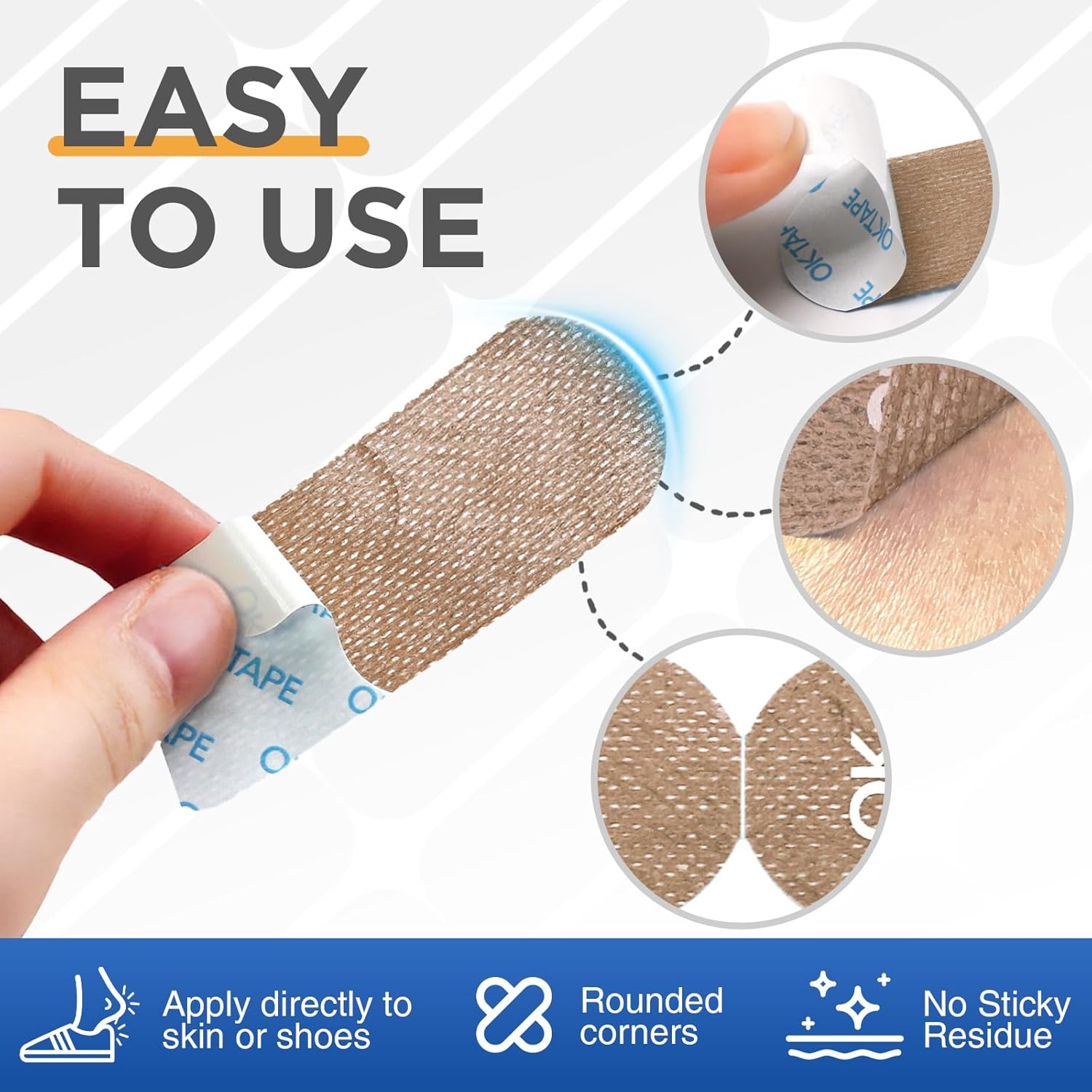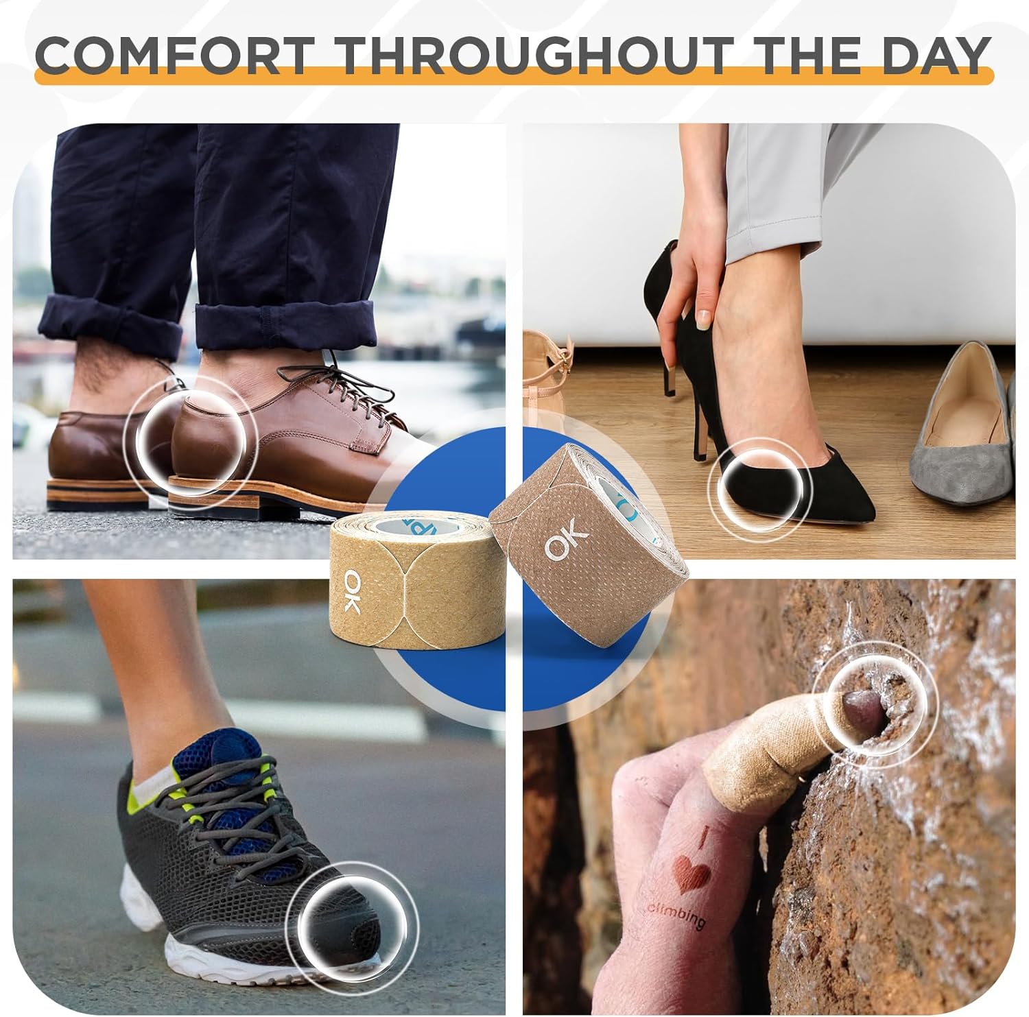 SUPER STICKY: With OK TAPE special strong and water-resistant adhesive, the moleskin tape won’t come off even after a sweaty workout or shower; Enjoy running, hiking, climbing and exercising!