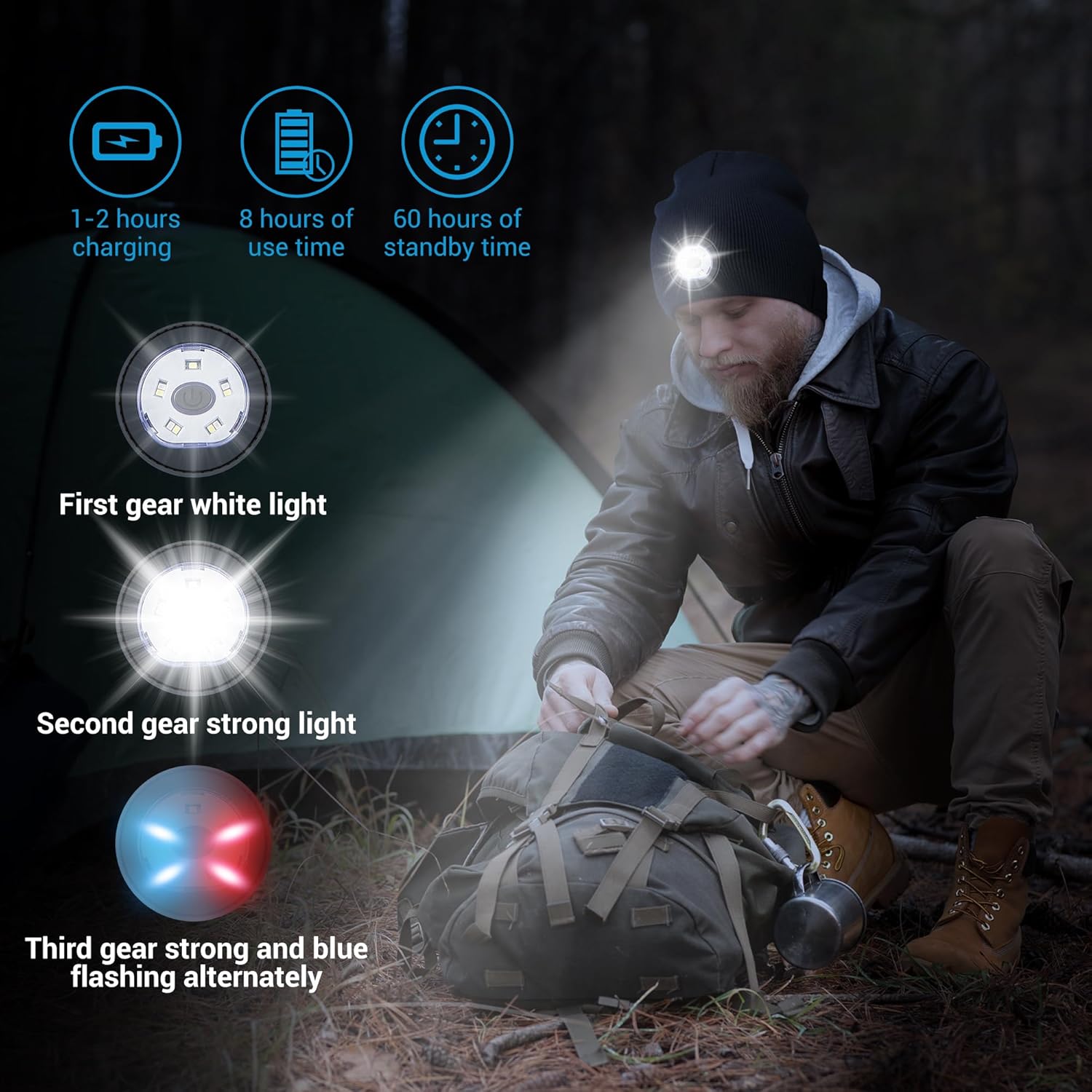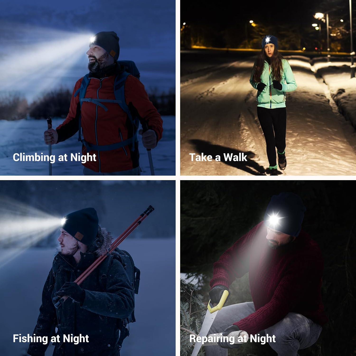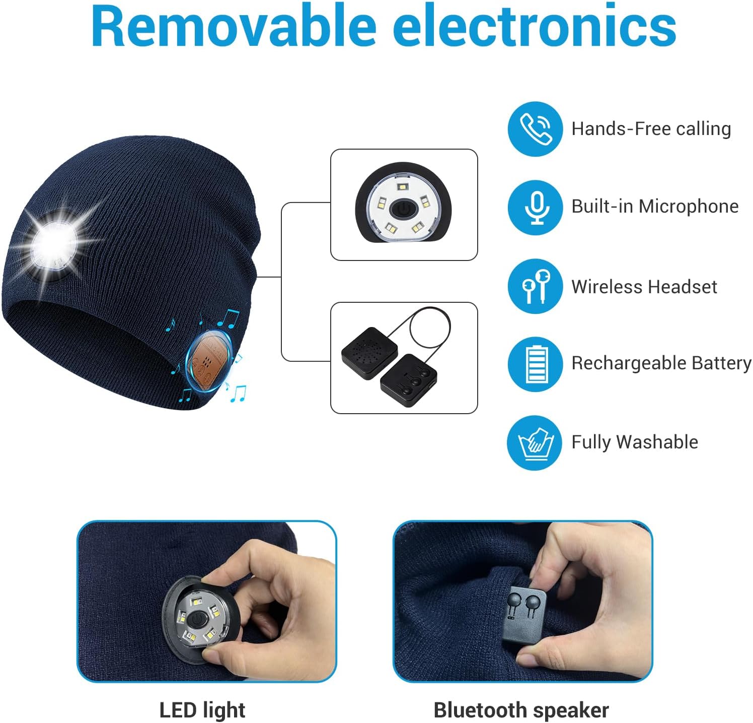 Beanie with Light and Bluetooth Headphones, Rechargeable &Removable