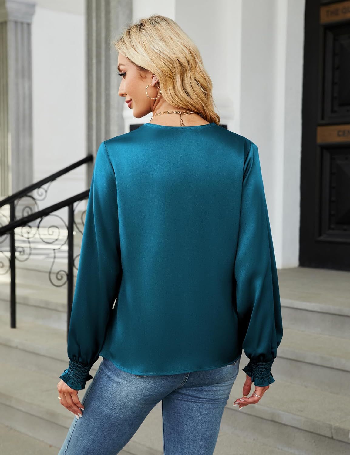 The video showcases the product in use.The video guides you through product setup.The video compares multiple products.The video shows the product being unpacked. satin blouses for women dressy casual Merchant Video