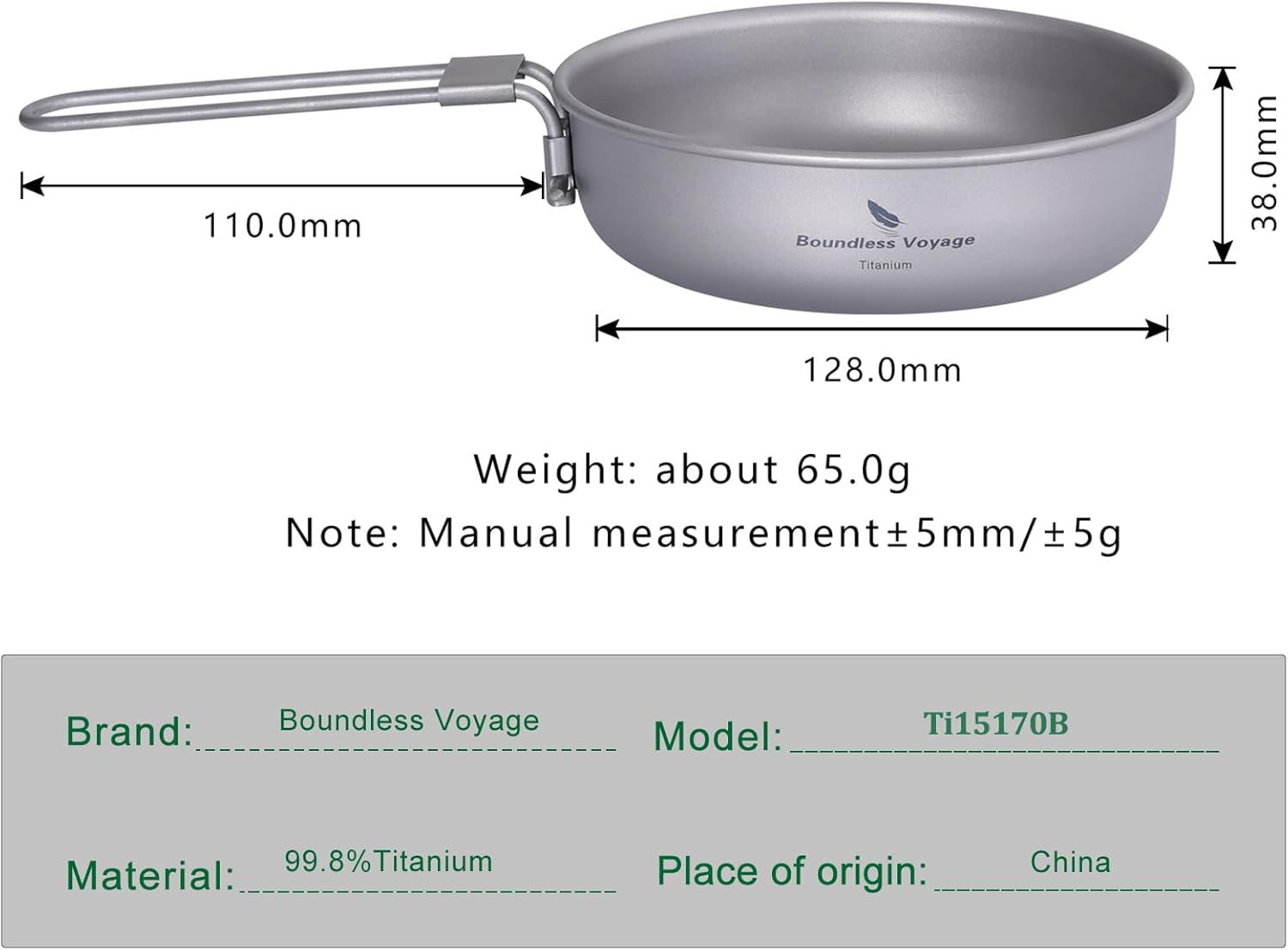 Strong & Ultralight Titanium pan is ideal for Camping, Travel, Hiking or as Coffee Tea Cups at home. Titanium pan is more durable and solid than any other Metal Outdoor pan, while still lighter than them on similarly-size.