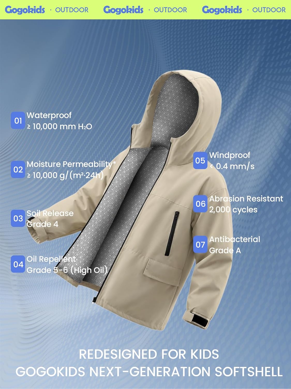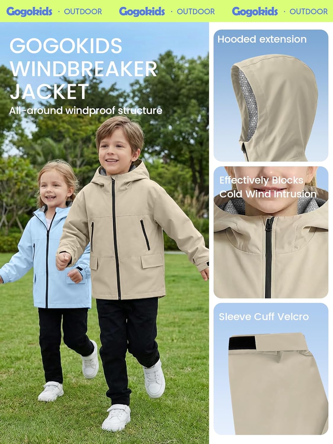 Size: Gogokids’ outerwear jackets designed for kids aged 4-12 years old. Size 110 (Age: 4-5 Years), Size 120 (Age: 5-6 Years), Size 130 (Age: 7-8 Years), Size 140 (Age: 9-10 Years), Size 150 (Age: 11-12 Years). Please refer to our size chart before placing an order