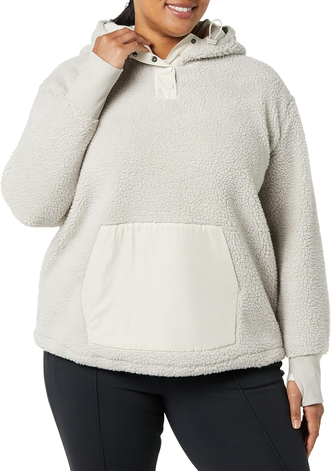 Customers find the fleece jacket warm and comfortable, with good quality material and a cute appearance. The fit receives mixed feedback, with some saying it runs big while others find it runs small. The material texture and boxy feel are also mixed aspects, with several customers noting the material feels stiff like carpet and describing the jacket as boxy. Several customers mention the jacket is very bulky and heavy.