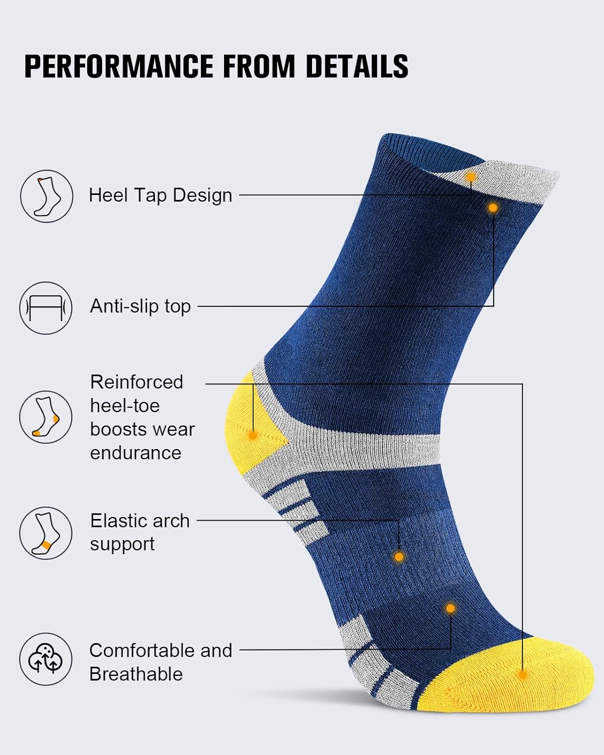 Cushioned Socks for Men 9-12: These men’s hiking socks have thick, soft terry padding for comfort and shock absorption, reducing foot fatigue and keeping feet warm and protected during activities like running, hiking, golf, and sports.