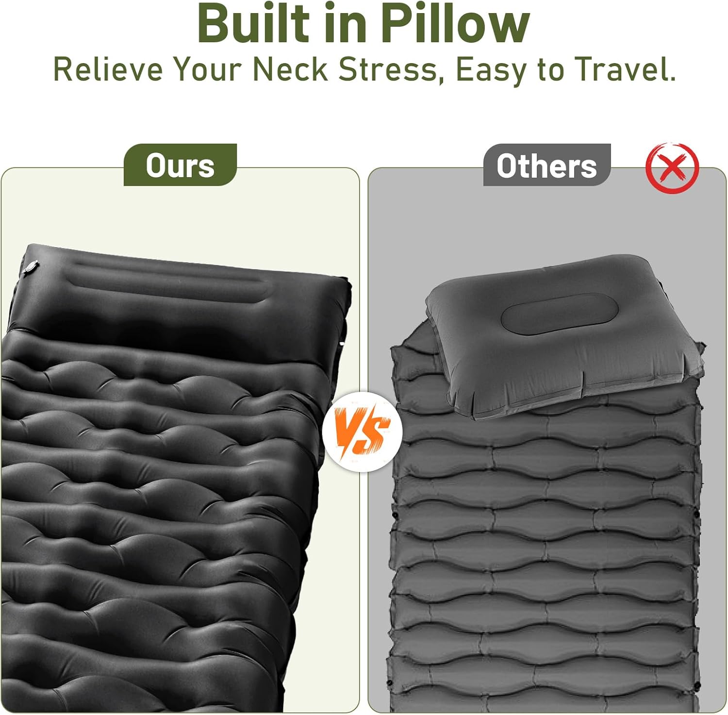 【Only 30s Step to Inflate & 1s Deflate】 Say goodbye to blowing air or fiddling with bulky pumps or mouths. In under 60 seconds, this foot pump camping mattress is fully inflated,and it only takes 1 second to quickly deflate. It’s fast, hygienic, and perfect for solo or family outdoor adventures.