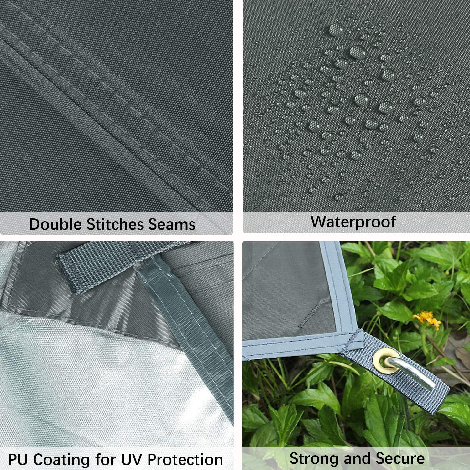 Perfect Tarp for Weather Protection: Interior with silver coated and PU2000mm waterproof provides excellent UV-resistance and rain fly protection to keep you from sunshade, down pours, rain shade, high winds, and snow shade