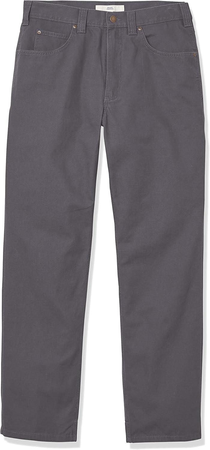 Amazon Essentials Men’s Carpenter Utility Pant are made from a midweight cotton canvas. These utility pants have a relaxed fit through the hip, thigh, and leg, and sit at the waist. The classic carpenter design of these men’s pants features denim-style pockets and tool loops. Our men’s carpenter pants have a zip fly, metal button waistband closure, and rivet reinforcements.