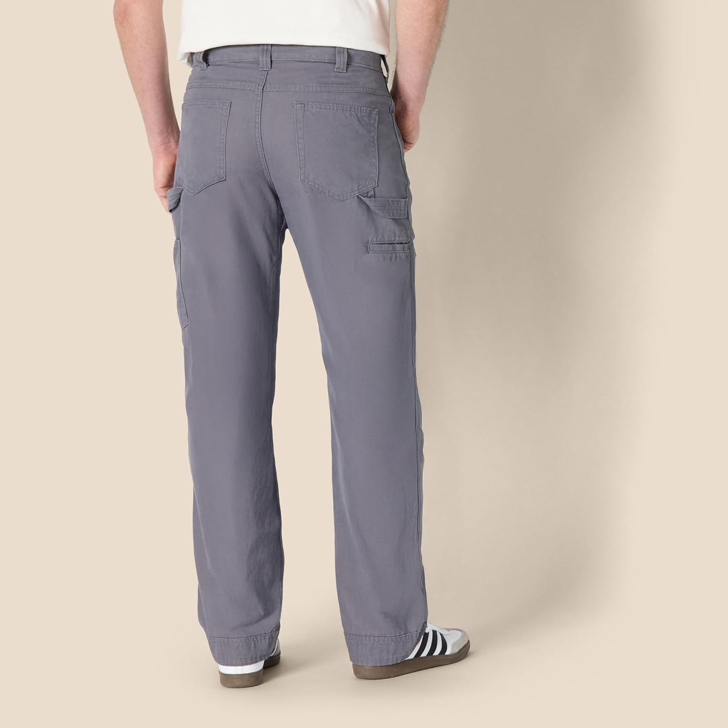Amazon Essentials Men’s Carpenter Utility Pant are made from a midweight cotton canvas. These utility pants have a relaxed fit through the hip, thigh, and leg, and sit at the waist. The classic carpenter design of these men’s pants features denim-style pockets and tool loops. Our men’s carpenter pants have a zip fly, metal button waistband closure, and rivet reinforcements.