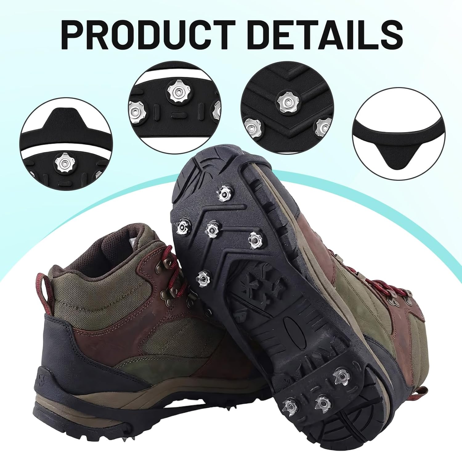Enhanced Traction: Micro spikes with 8 stainless steel spikes per cleat provide superior grip on ice and snow; Ideal for hiking, walking, and ice fishing; Ensures stability on slippery surfaces