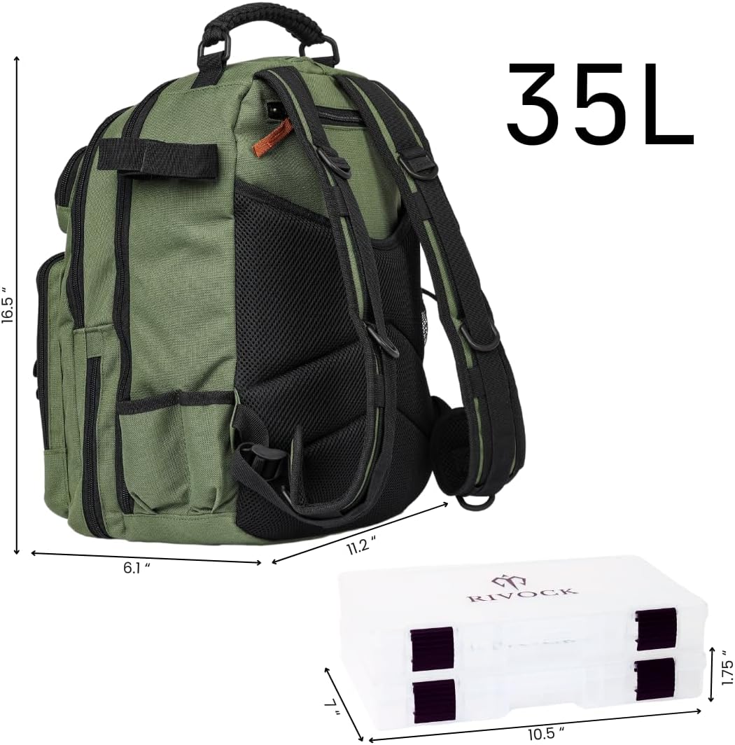 Rivock tackle backpack includes two removable fishing trays, designed for organizing and storing your tackle. These trays help keep hooks, baits, lures, and other small fishing gear neatly arranged.