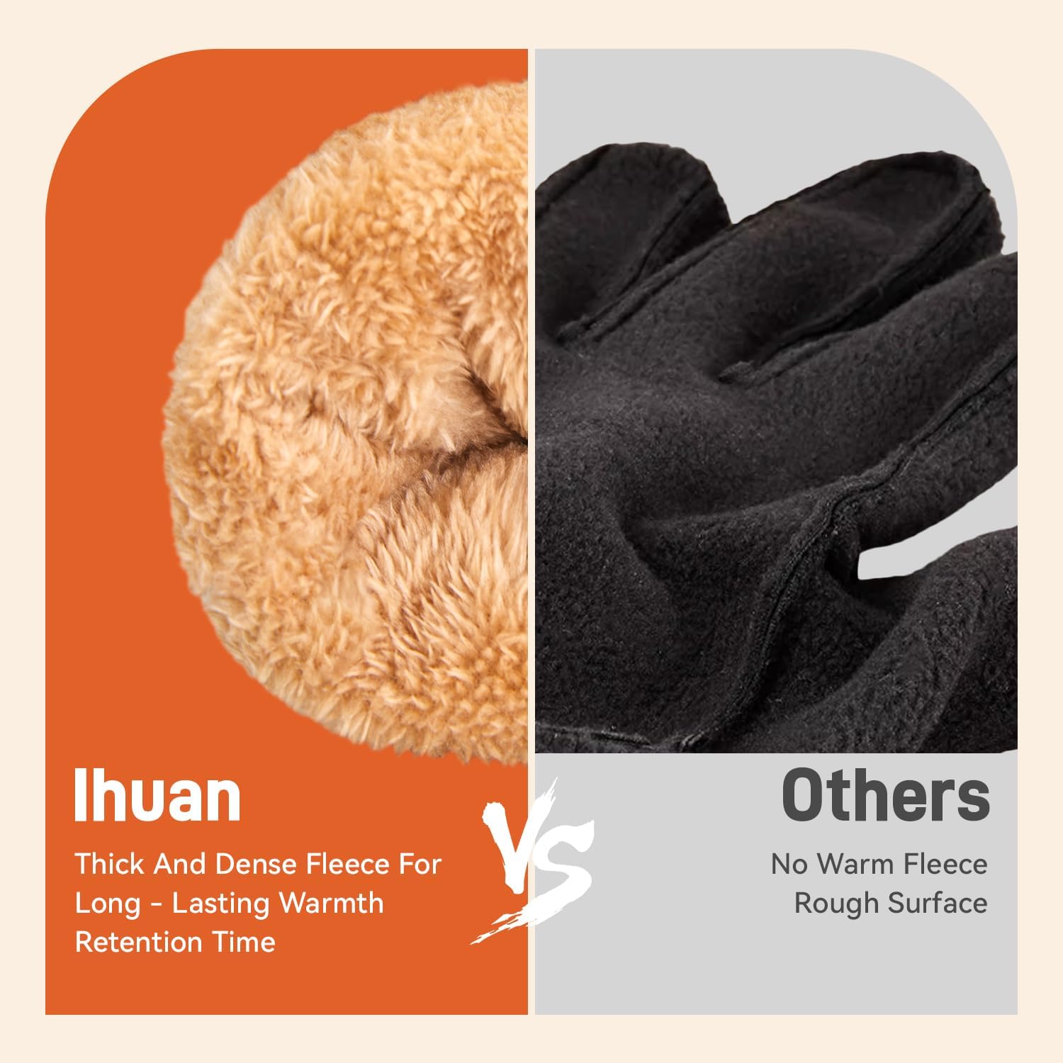 Warm and Windproof : The outer layer of ihuan thermal gloves uses tightly-woven material. The middle layer is filled with multi-layer thermal silk floss. The inner lining features moisture-absorbing, warm polar fleece. The extended windproof cuffs can block extreme cold air. ihuan Thermal Gloves is Your Best Choice for All-round warmth and wind protection in winter