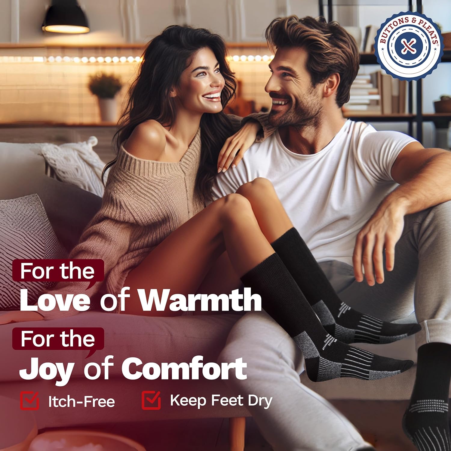 Customers find these hiking socks keep feet warm without being sweaty and appreciate their quality and comfort, noting they’re not itchy like some wool socks. The socks are soft with a cushioned inner lining, thick with merino wool material, and hug feet snugly without being too tight around the calf area. While some customers say they hold up well after multiple washes, others report they wear through quickly. Customers consider them good value for money.