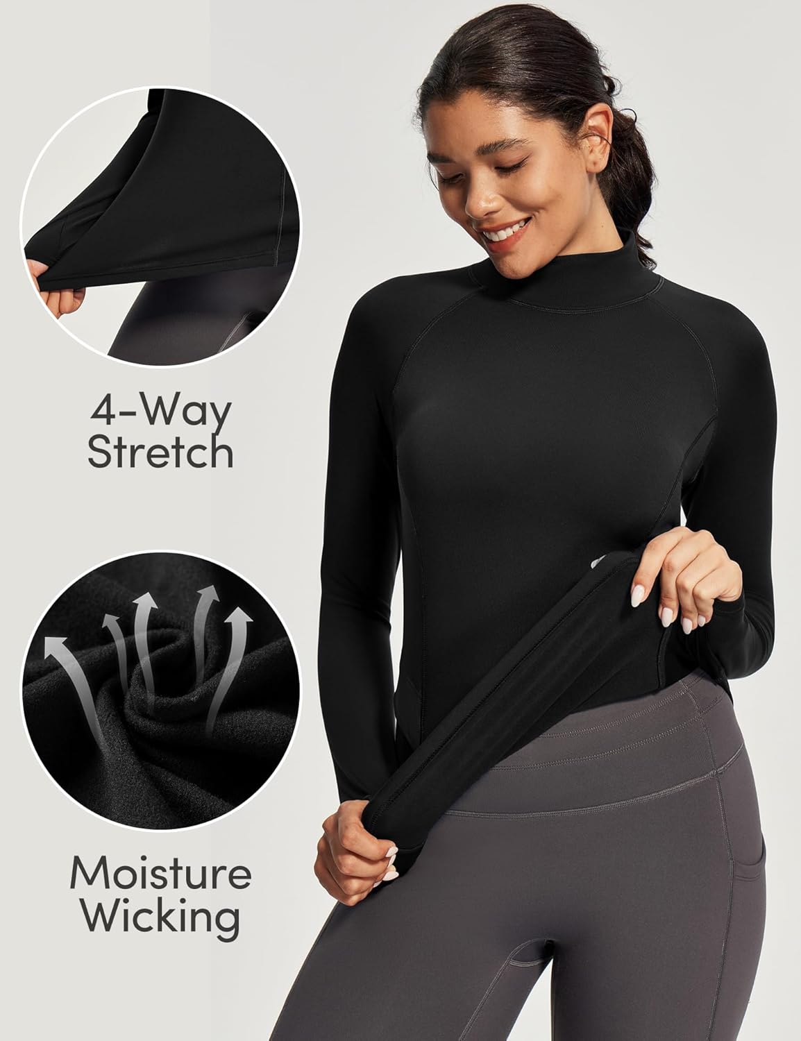 The video showcases the product in use.The video guides you through product setup.The video compares multiple products.The video shows the product being unpacked. IUGA Workout Thermal Shirts for Women Turtleneck Merchant Video