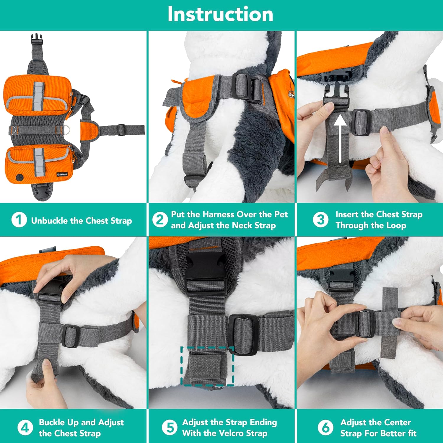 DOG HIKING BACKPACK HARNESS: Saddle bags for dogs are best for hiking or walking and comes with D Ring for attaching a leash. This backpack for dogs to wear is also equipped with a reinforced sturdy grab handle on top. Dog saddlebag features multiple adjustable straps to make it super easy for strapping the pack comfortably on your dog. Mesh padding layer offers breathable comfort for your dog.