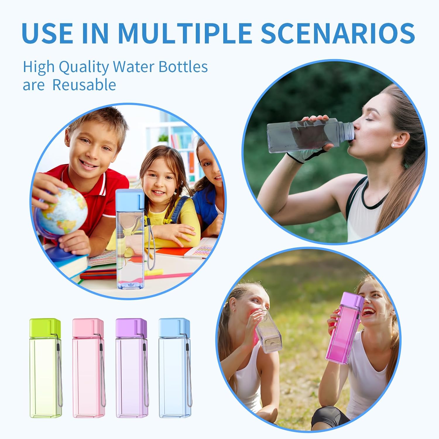【Wide Application】The clear water bottles for school are ideal party favors, whether you want to surprise family, friends or co-workers, these colorful bottles make practical and thoughtful gifts. Our water bottles pack is suitable for using in indoor and outdoor occasions, such as hiking, running, camping, fitness centers, cycling, classrooms, offices, and other outdoor activities. They can always help you replenish the water you need and provide you with a good drinking experience