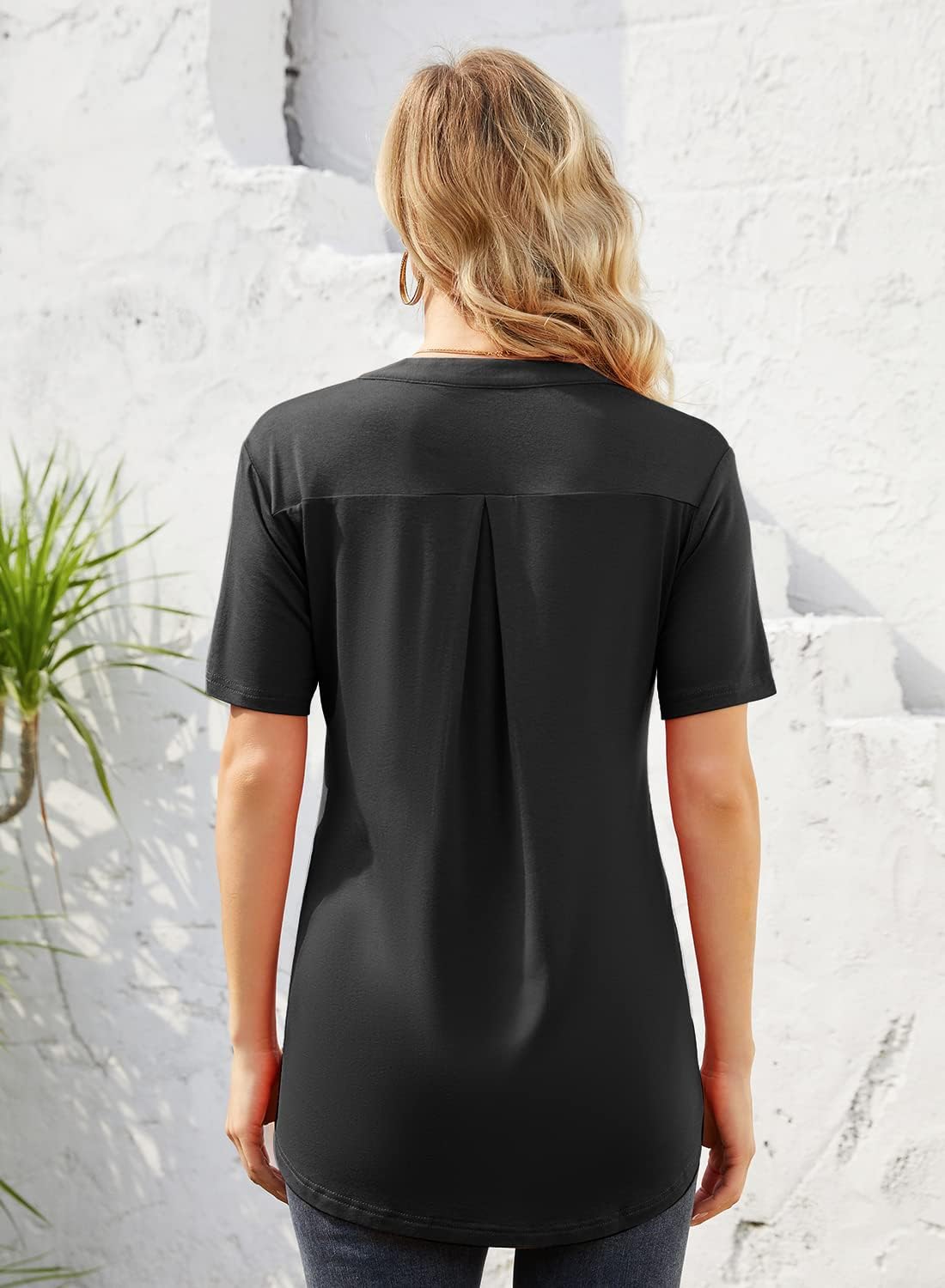 Loose fit but not baggy or oversized, drapes nicely. It is a comfortable short sleeve summer blouses for women. Easy to match with every outfits. The classic design is the best choice for fashion style!